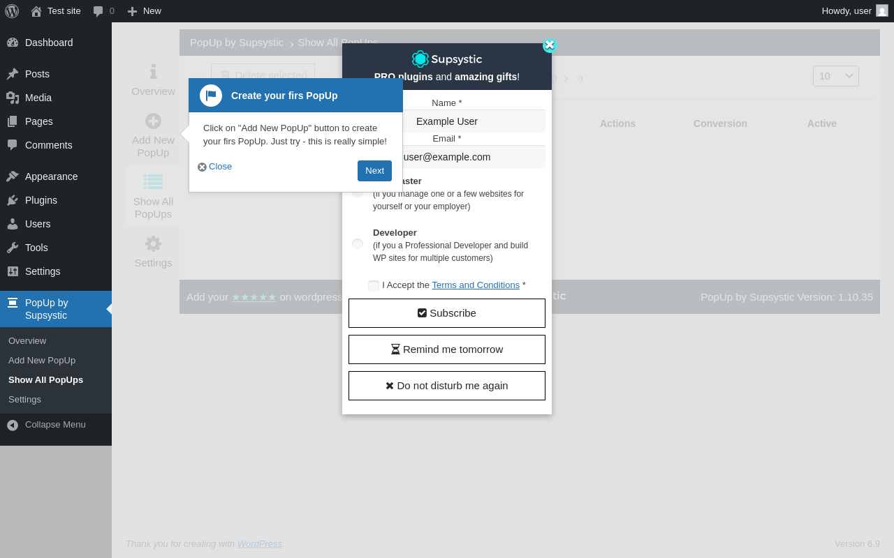 Does Popup by Supsystic work with WordPress 6.9 and PHP 8.1.12? A smoke test was performed on .