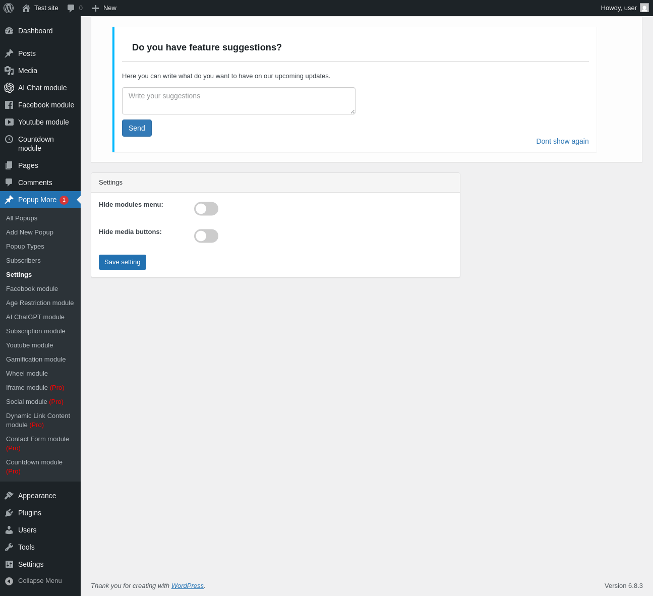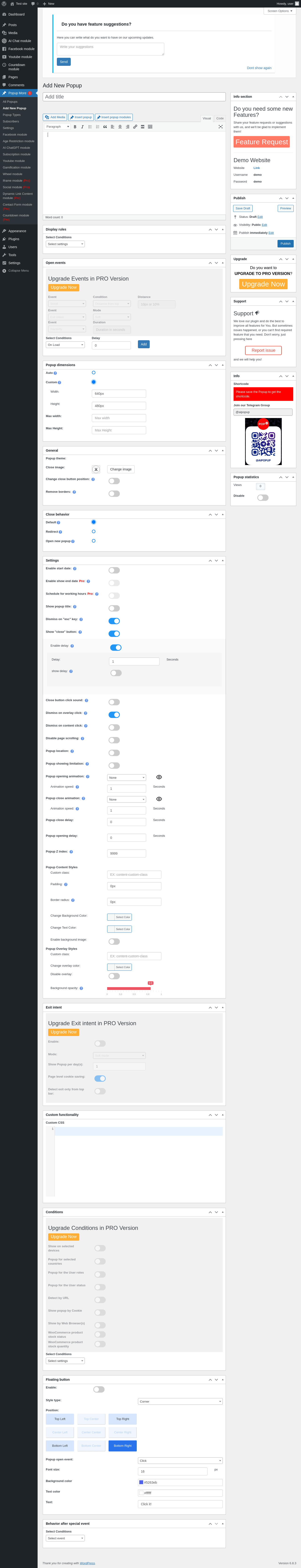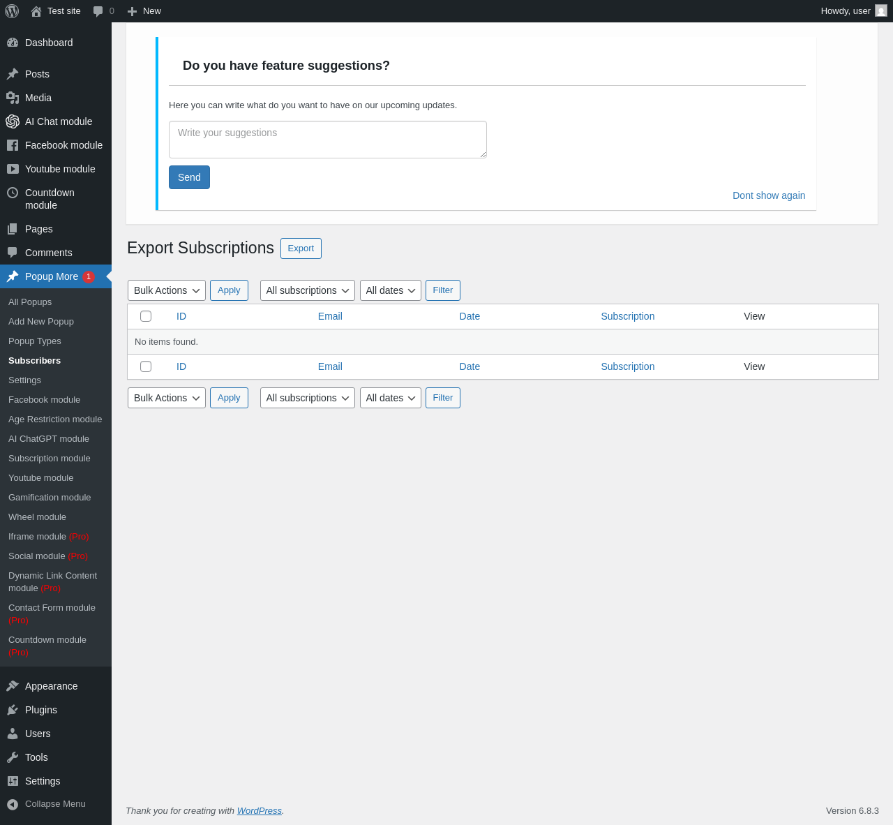 Popup More → Subscription module