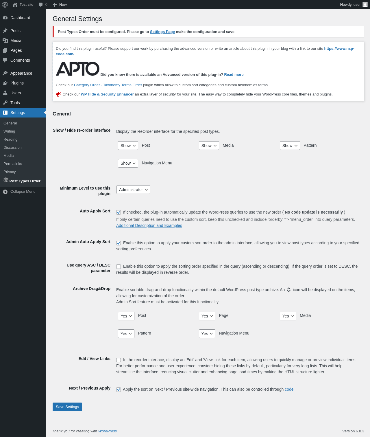 Does Post Types Order work with WordPress 6.8.3 and PHP 8.1.12? A smoke test was performed on .