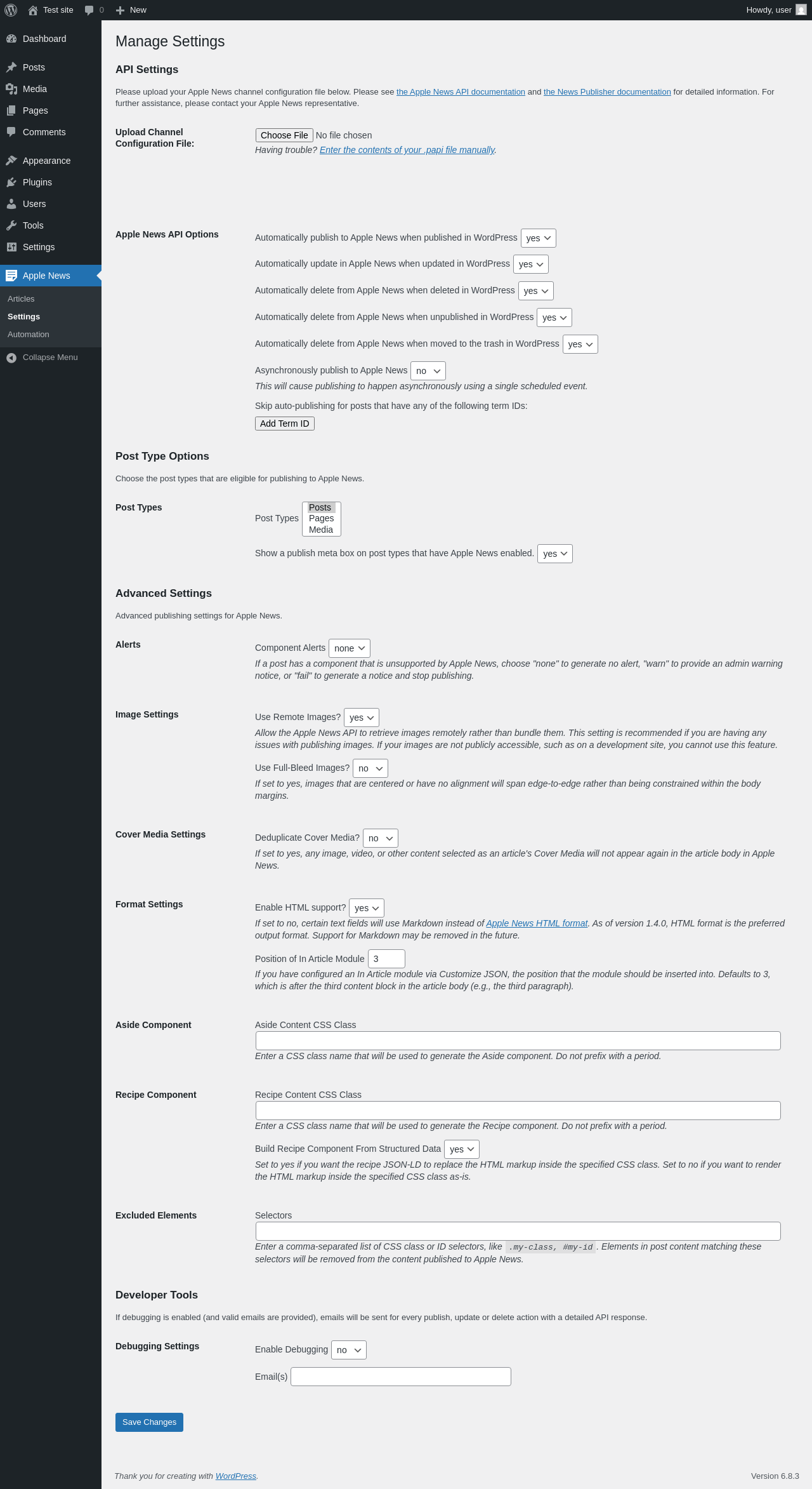 Does Publish To Apple News work with WordPress 6.8.3 and PHP 8.1.12? A smoke test was performed on .