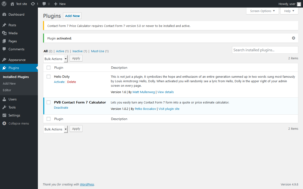Does PVB Contact Form 7 Calculator work with WordPress 4.9.8 and PHP 7.0.16? A smoke test was performed on .