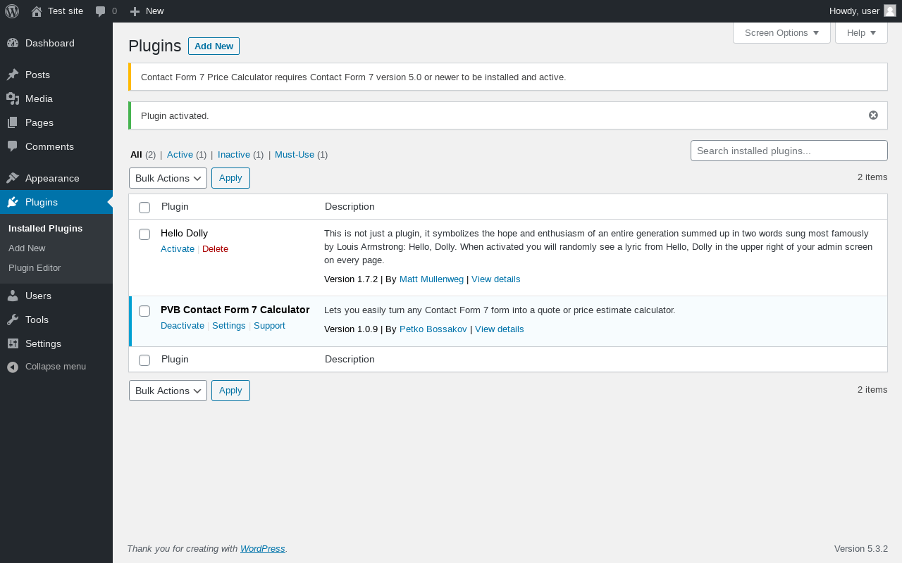 Does PVB Contact Form 7 Calculator work with WordPress 5.3.2 and PHP 7.2.16? A smoke test was performed on .