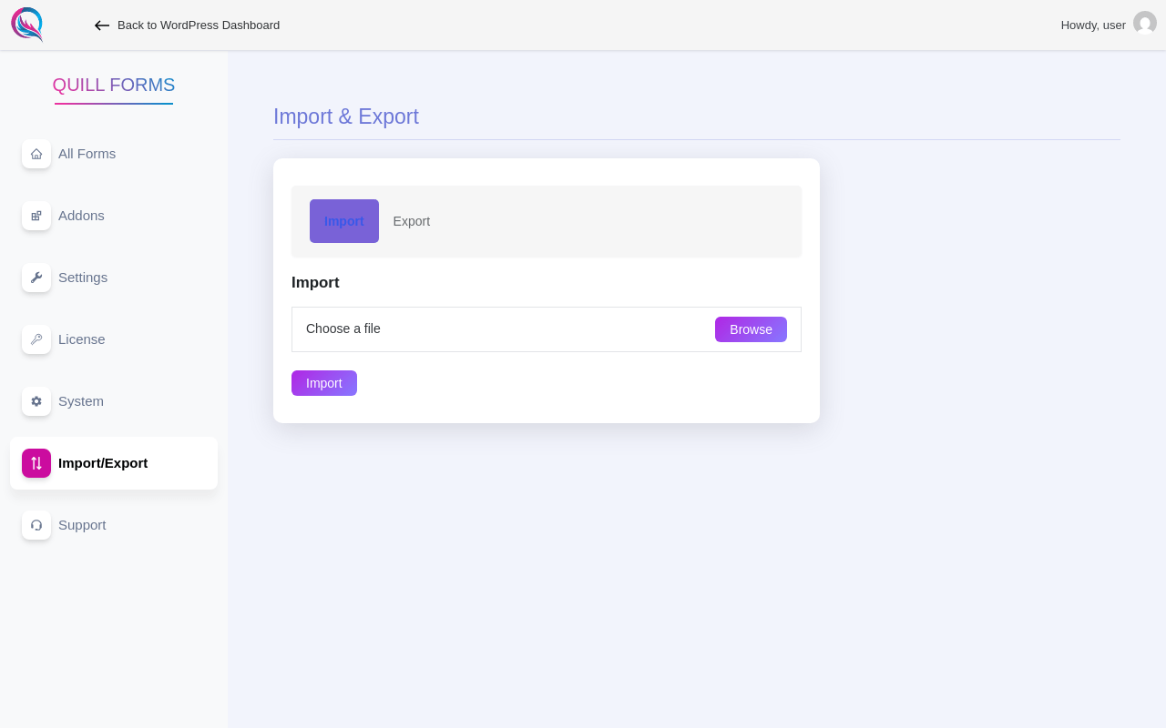 URL | /wp-admin/admin.php?page=quillforms&path=import-export |