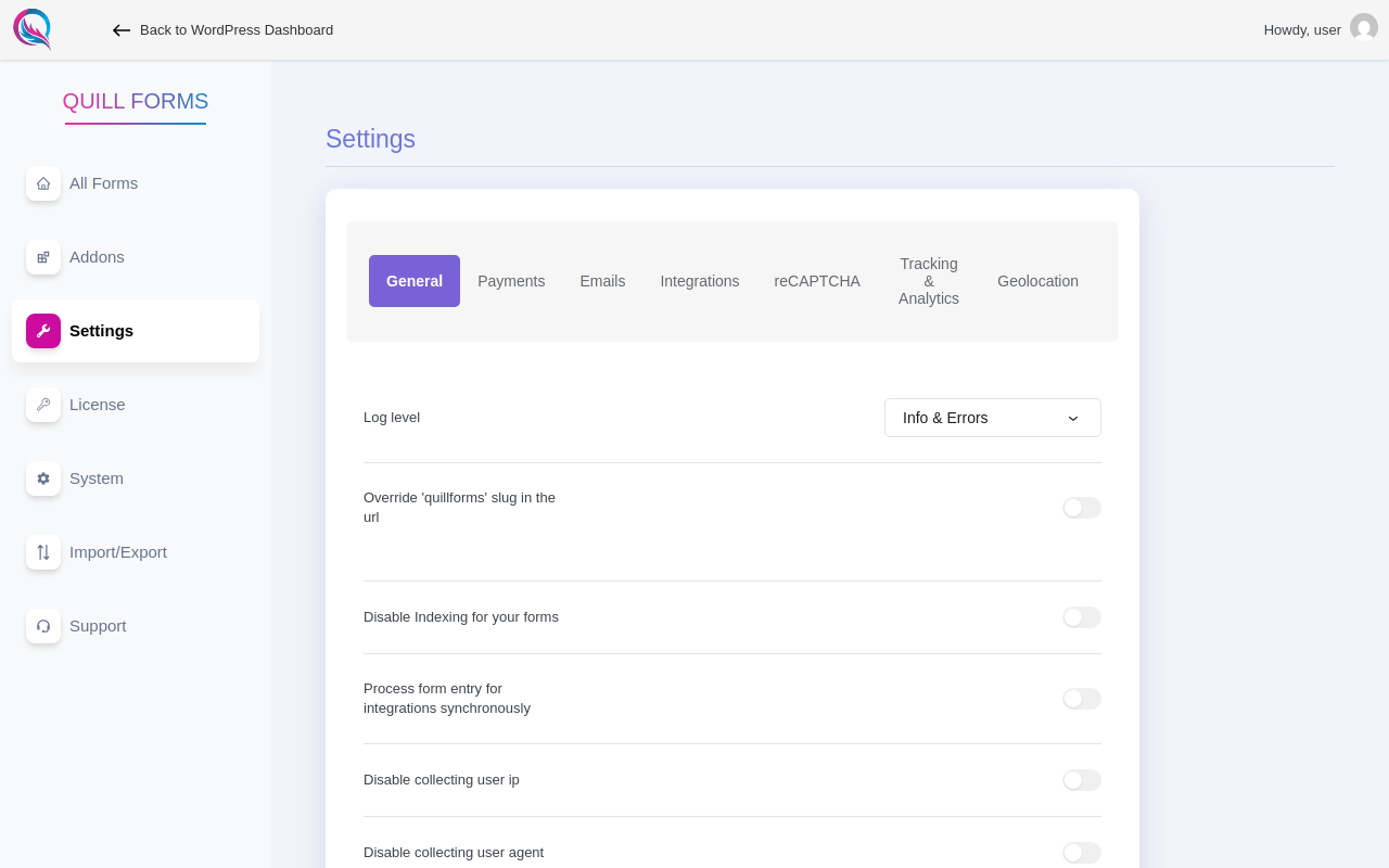| URL | /wp-admin/admin.php?page=quillforms&path=settings |