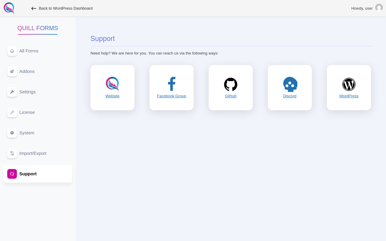| URL | /wp-admin/admin.php?page=quillforms&path=support |
