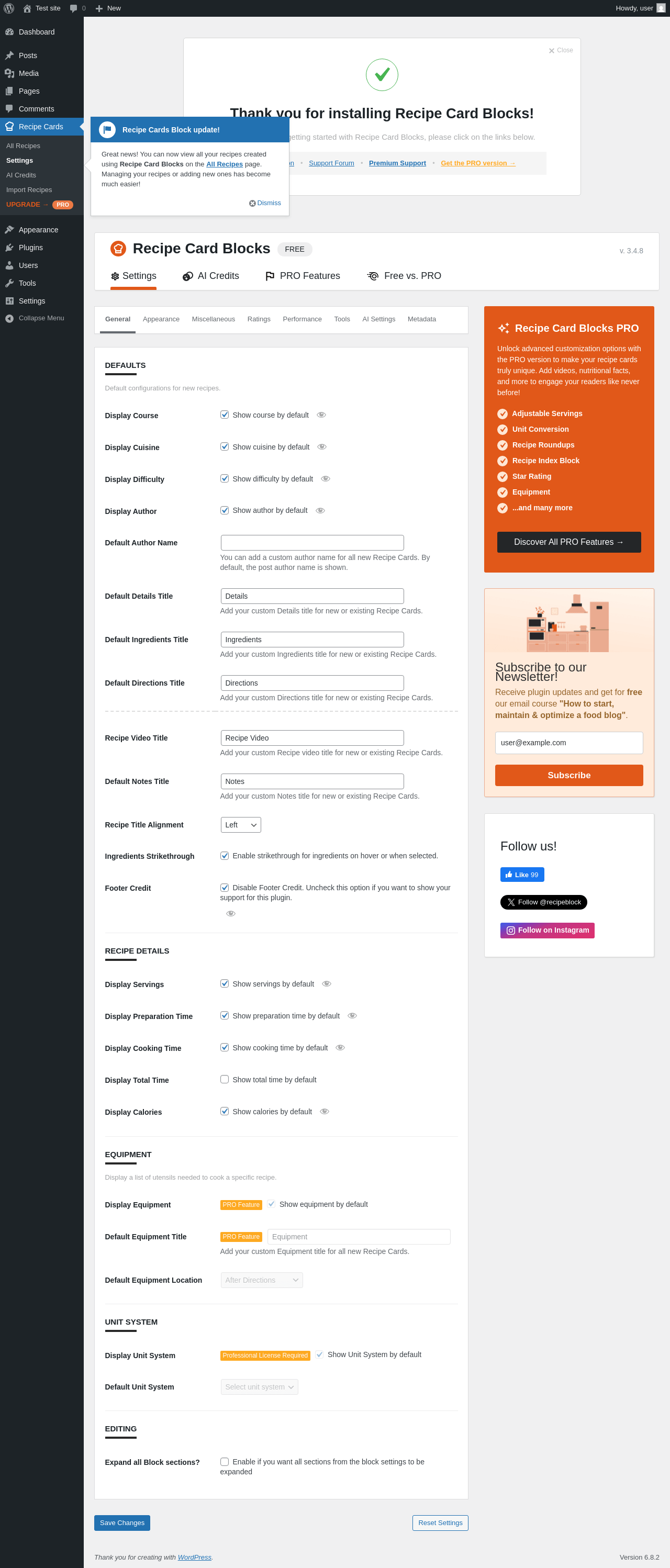 Does Recipe Card Blocks work with WordPress 6.8.2 and PHP 8.1.12? A smoke test was performed on .