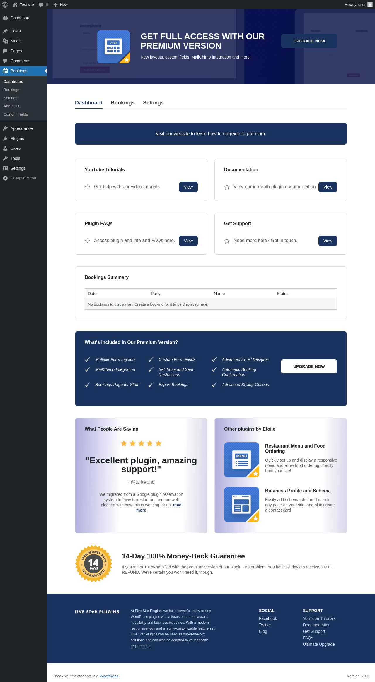Does "Five Star Restaurant Reservations - WordPress Booking Plugin" work with WordPress 6.8.3 and PHP 8.1.12? A smoke test was performed on .