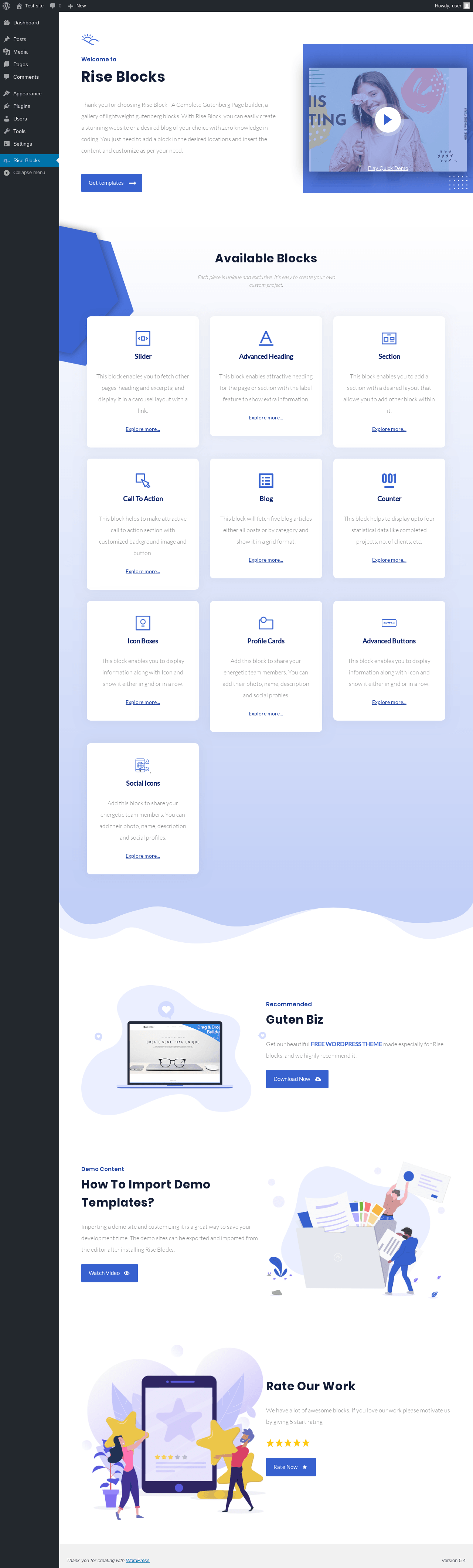 URL | /wp-admin/admin.php?page=rise_blocks |