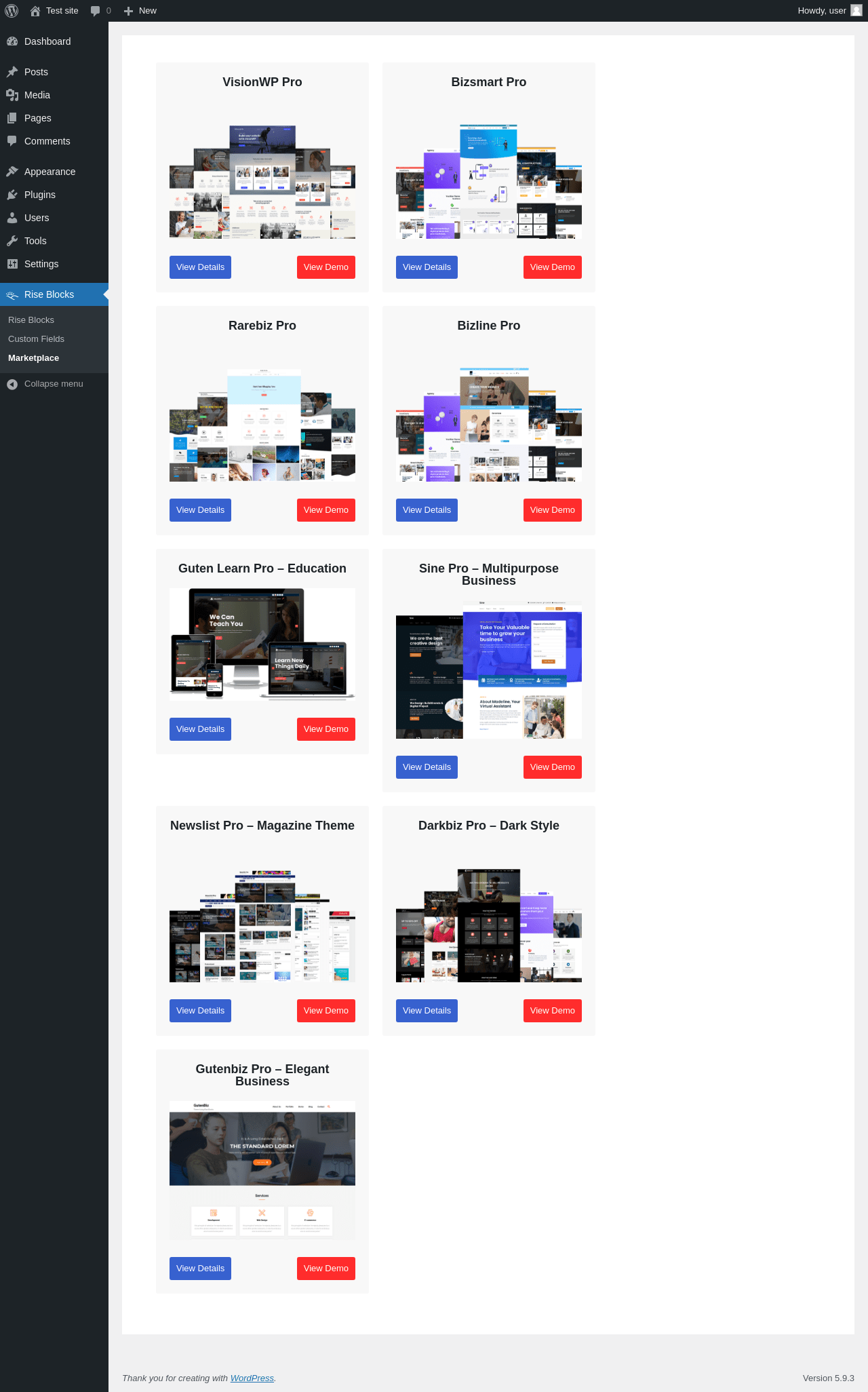 URL | /wp-admin/admin.php?page=rise-blocks-marketplace |
