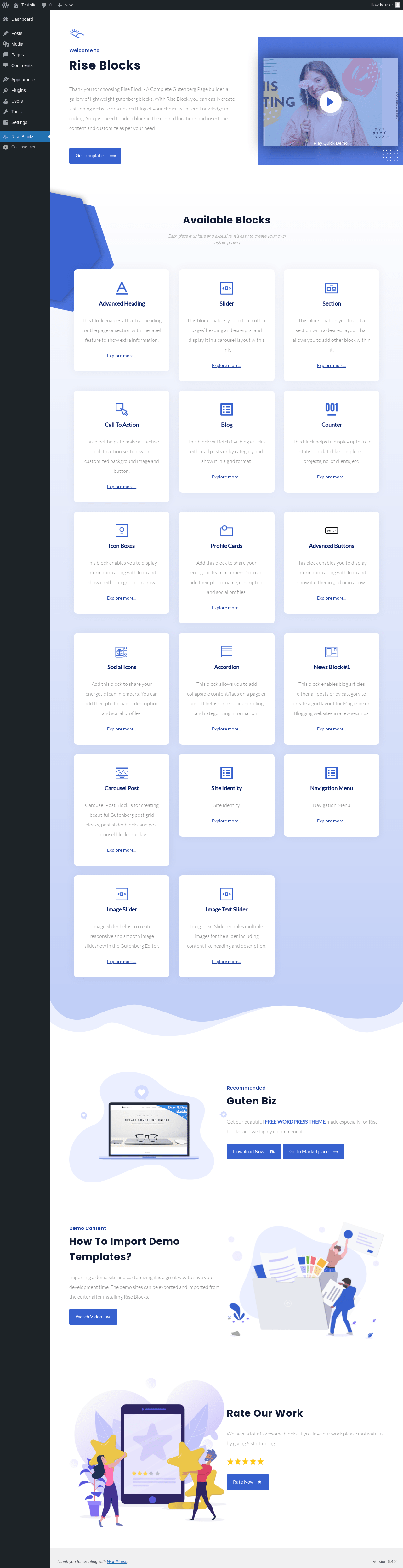 URL | /wp-admin/admin.php?page=rise_blocks |