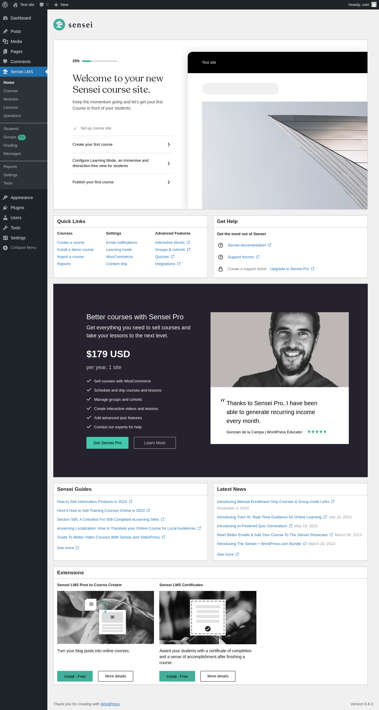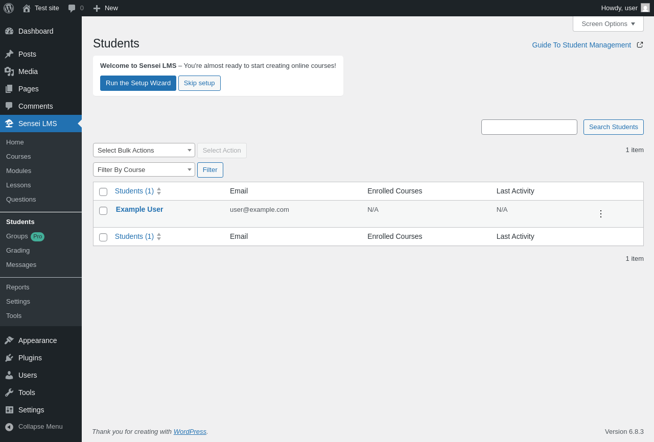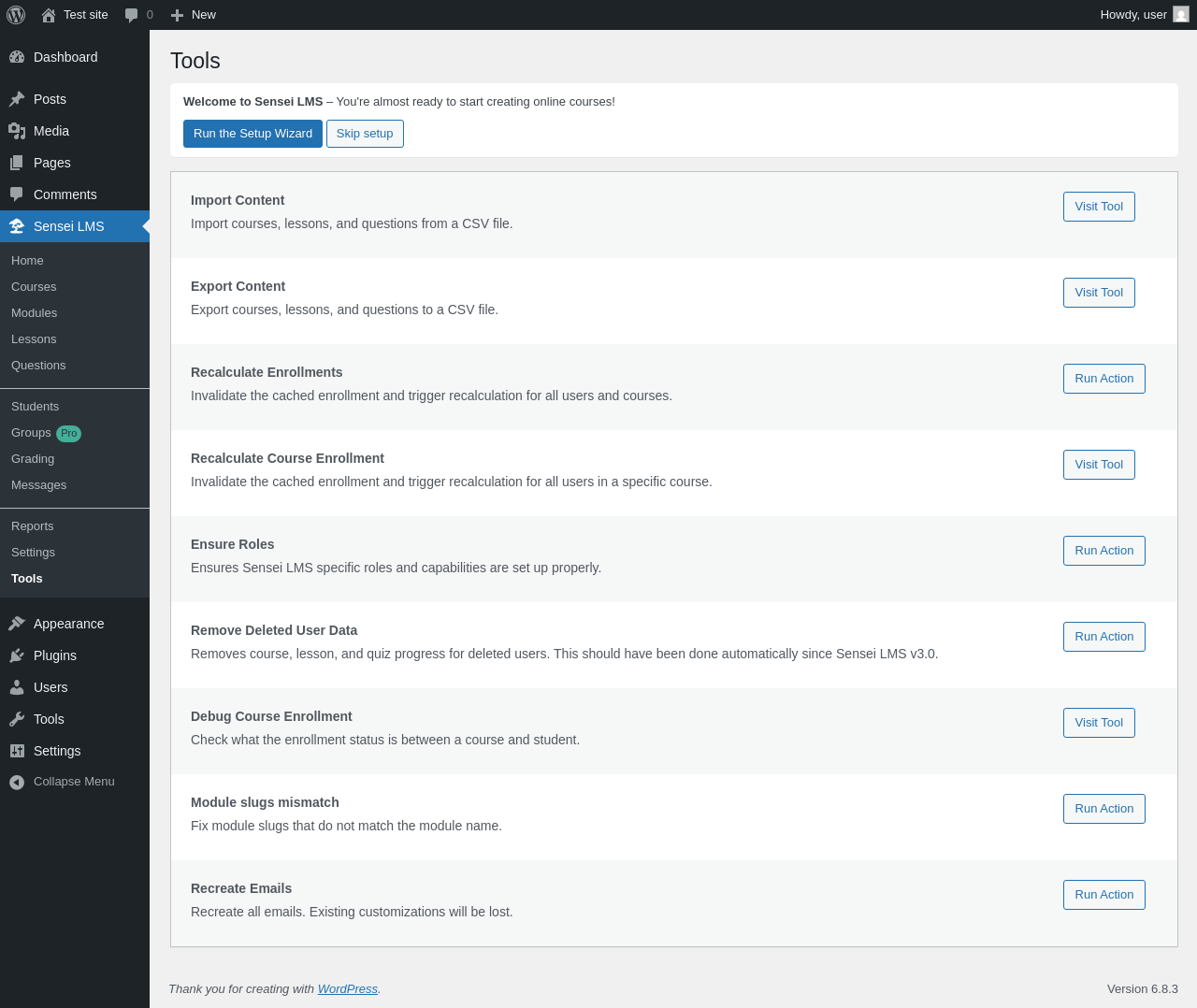 Pages 17 Sensei LMS - Setup Wizard ‹ Test site — WordPress
