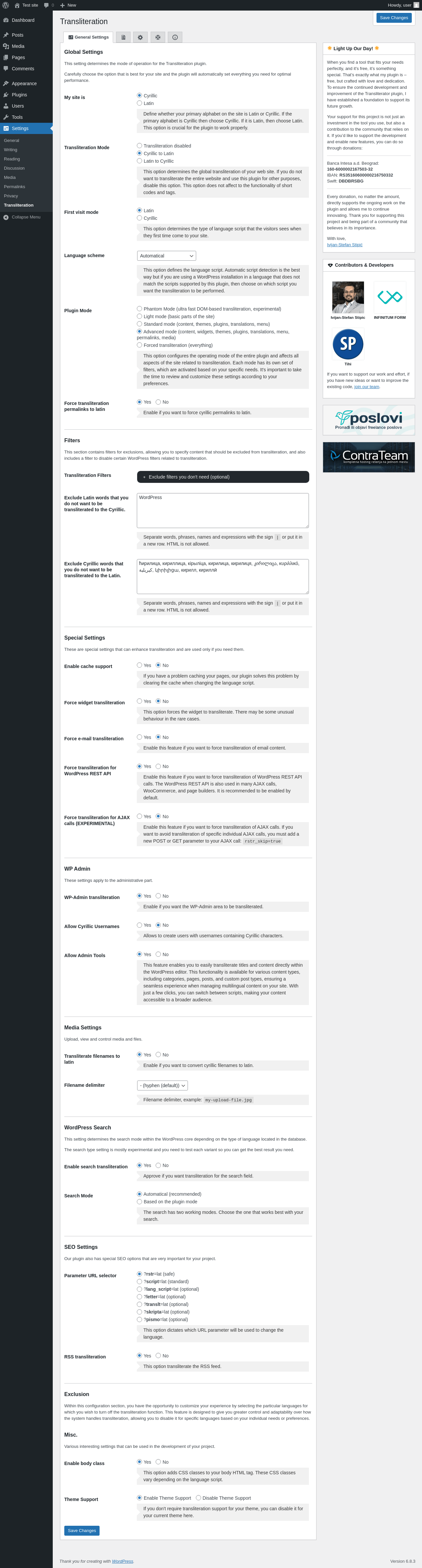 | URL | /wp-admin/options-general.php?page=transliteration-settings |