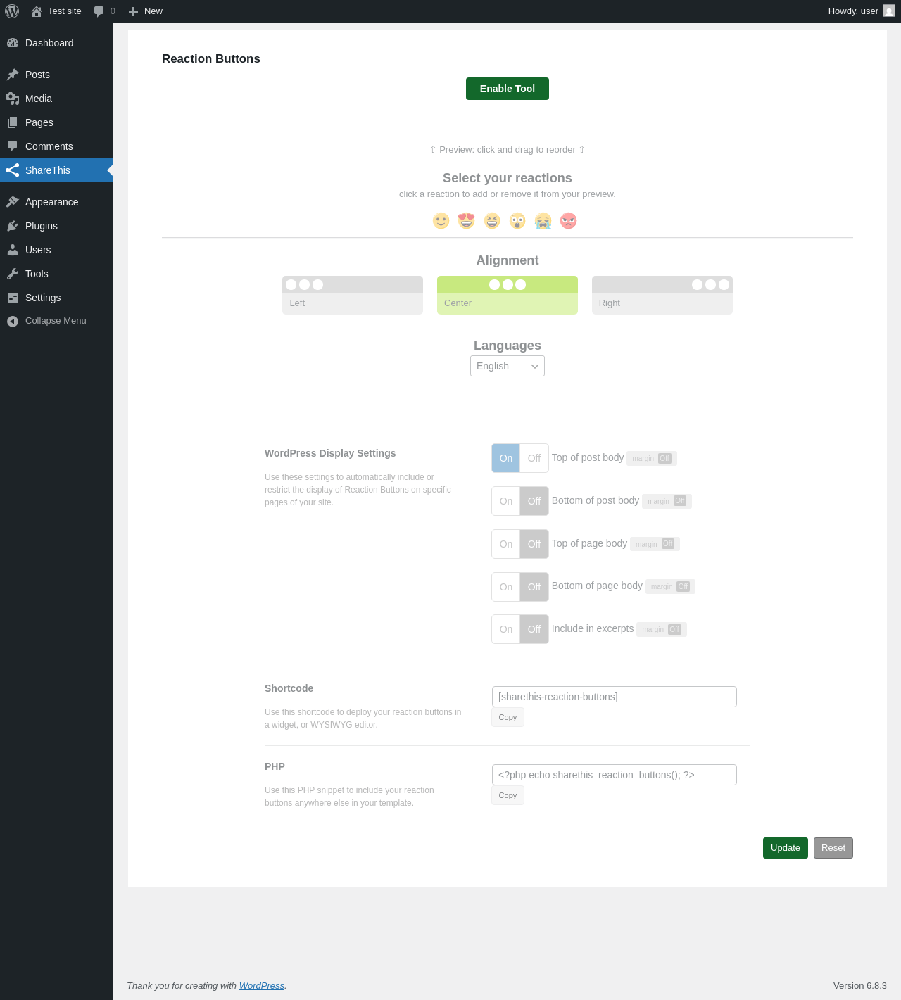 Does ShareThis Reaction Buttons work with WordPress 6.8.3 and PHP 8.1.12? A smoke test was performed on .