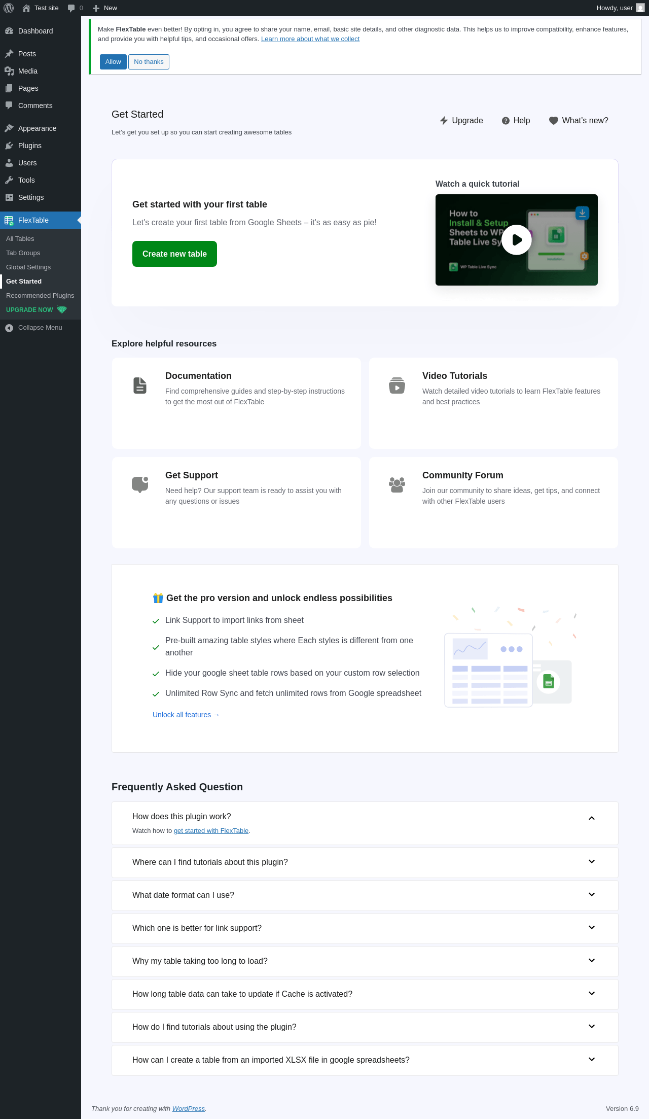 Does FlexTable work with WordPress 6.9 and PHP 8.1.12? A smoke test was performed on .