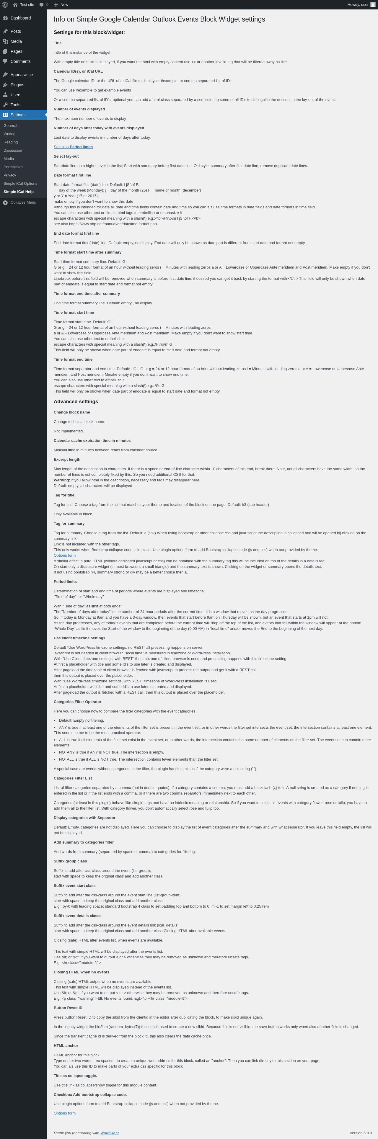| URL | /wp-admin/options-general.php?page=simple_ical_options |