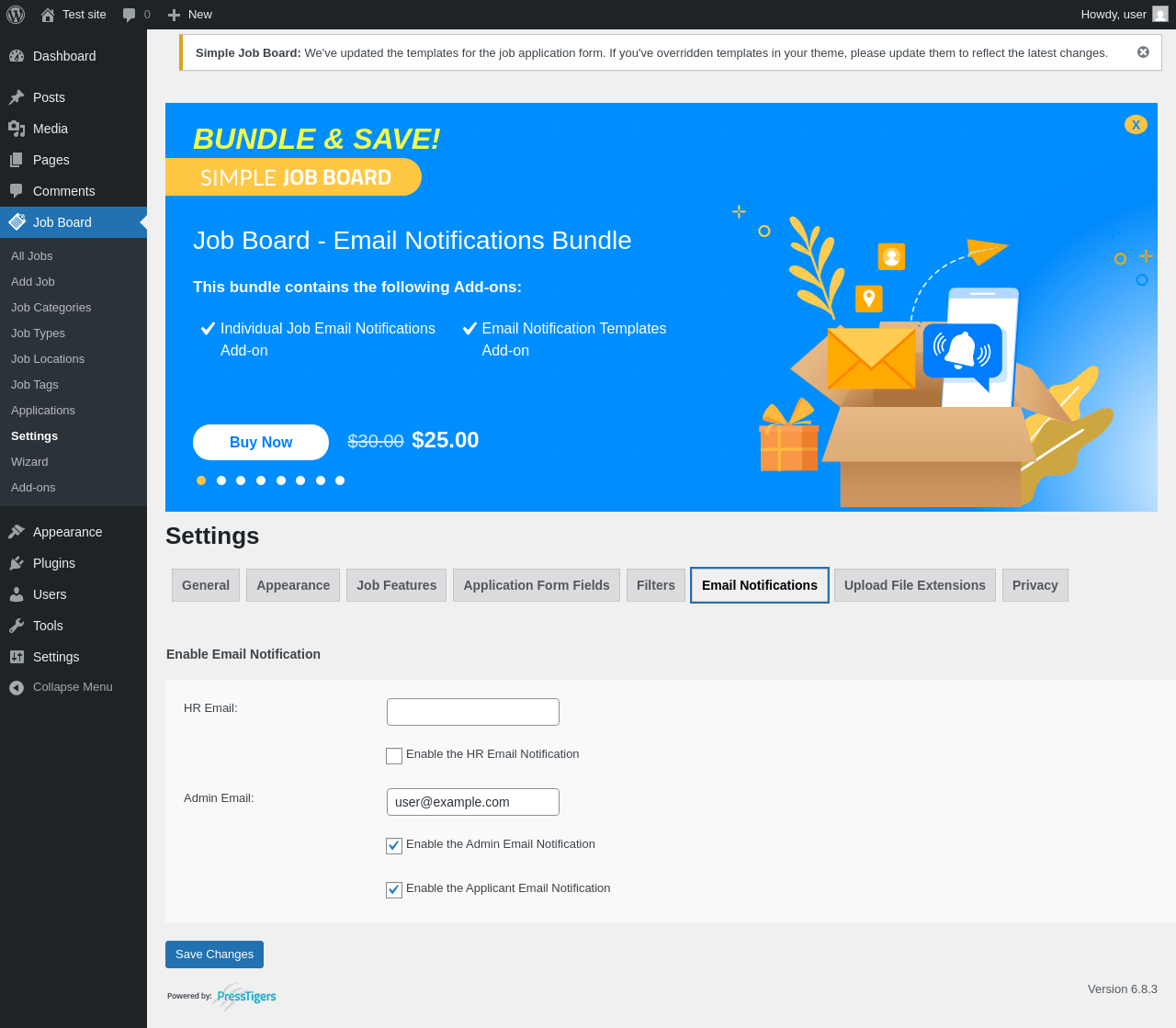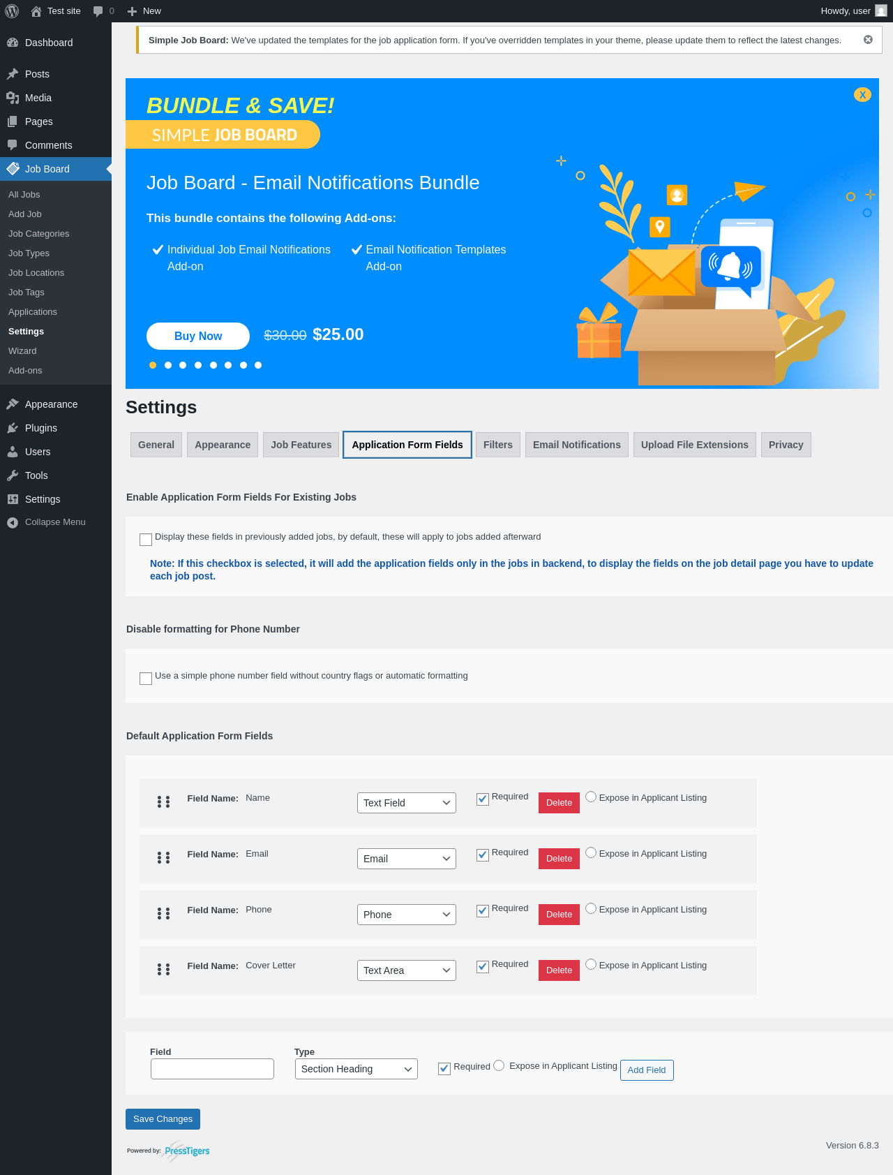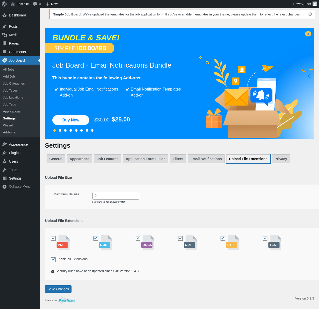 Does Simple Job Board work with WordPress 6.8.3 and PHP 8.1.12? A smoke test was performed on .