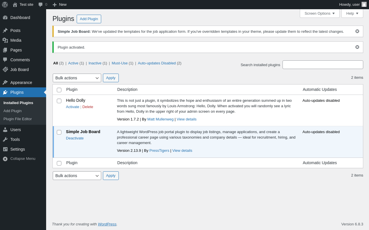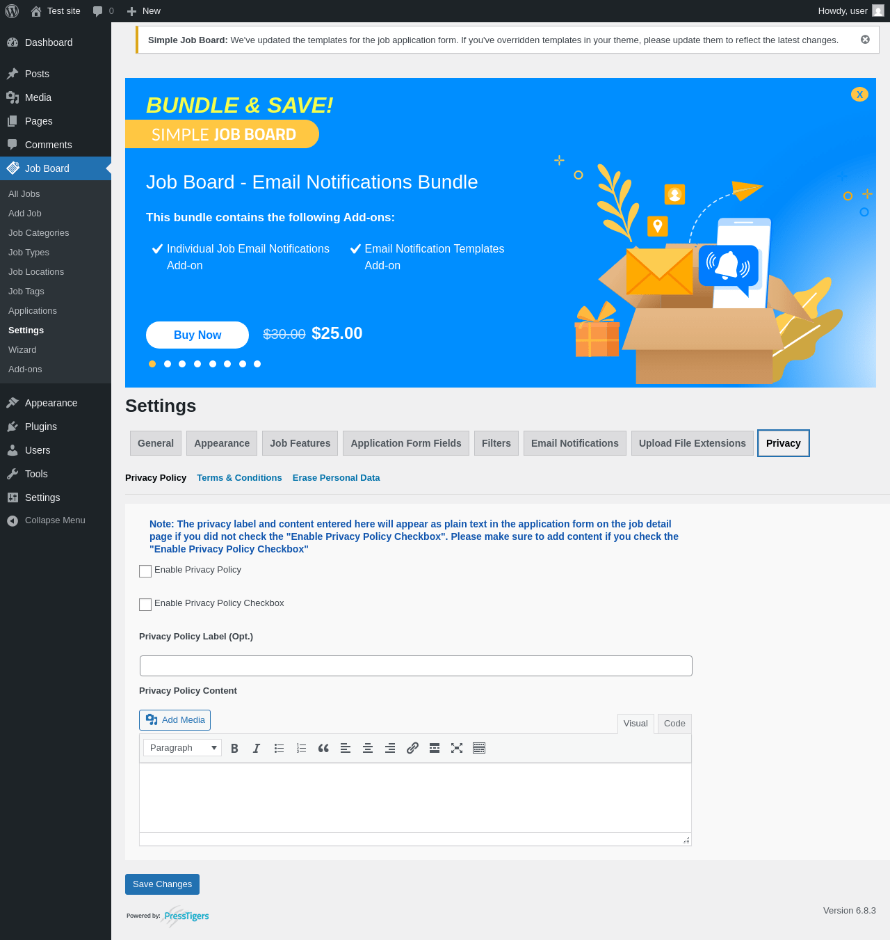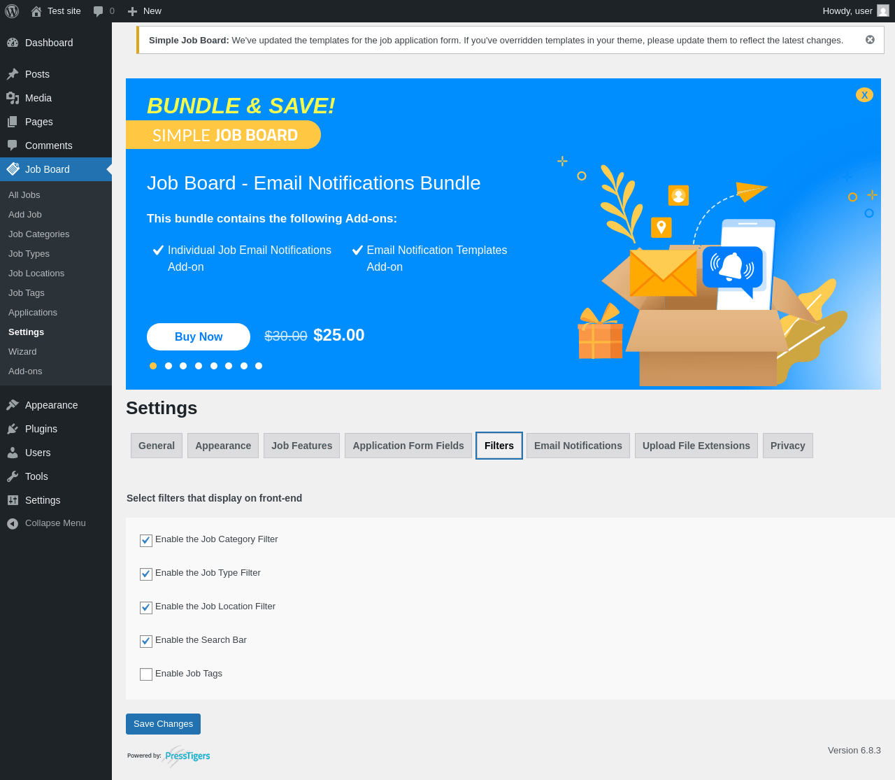Does Simple Job Board work with WordPress 6.8.3 and PHP 8.1.12? A smoke test was performed on .