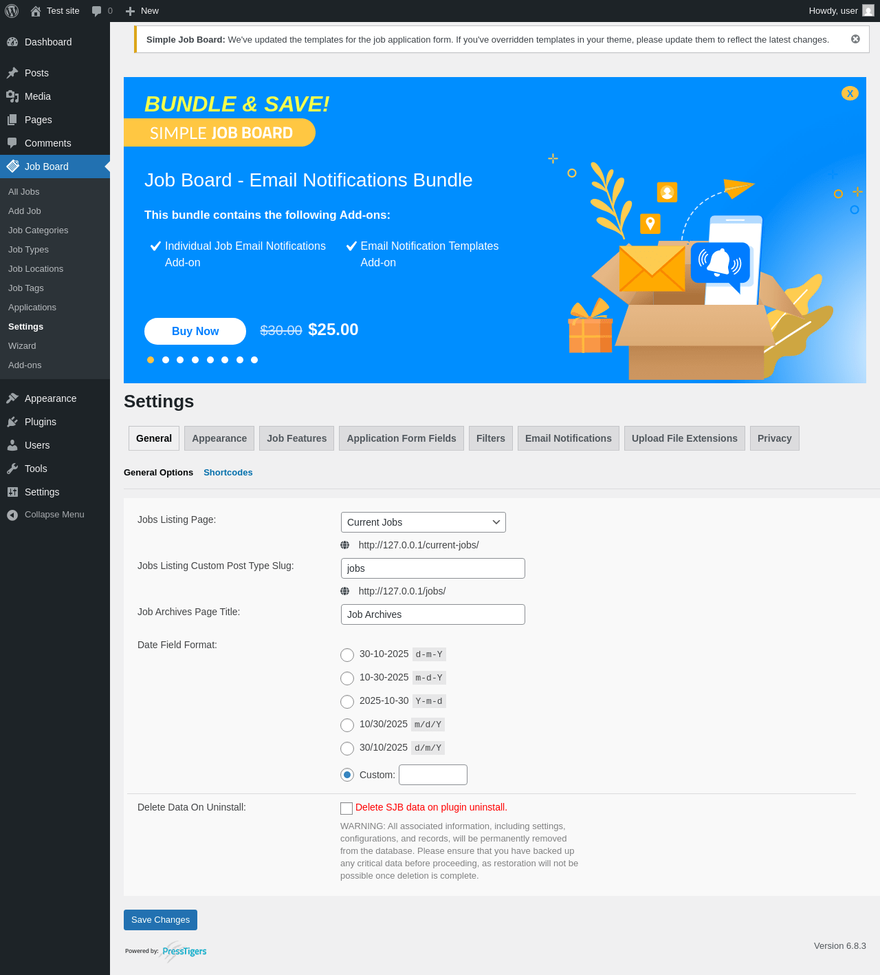 | URL | /wp-admin/edit.php?post_type=jobpost&page=job-board-settings |