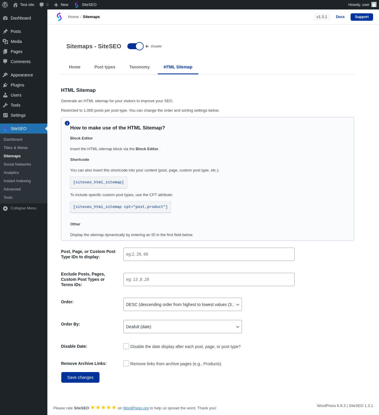 | URL | /wp-admin/admin.php?page=siteseo-sitemaps |