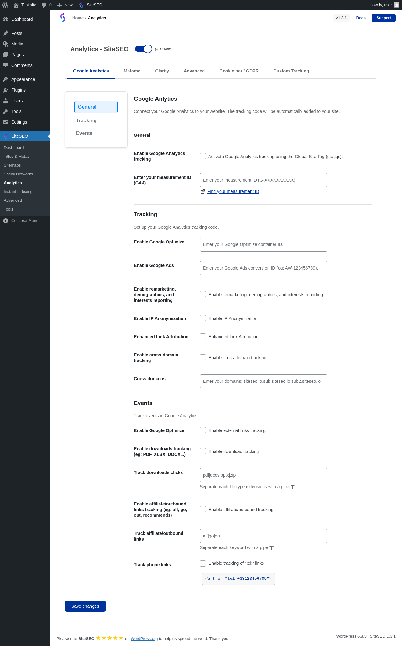 | URL | /wp-admin/admin.php?page=siteseo-analytics |