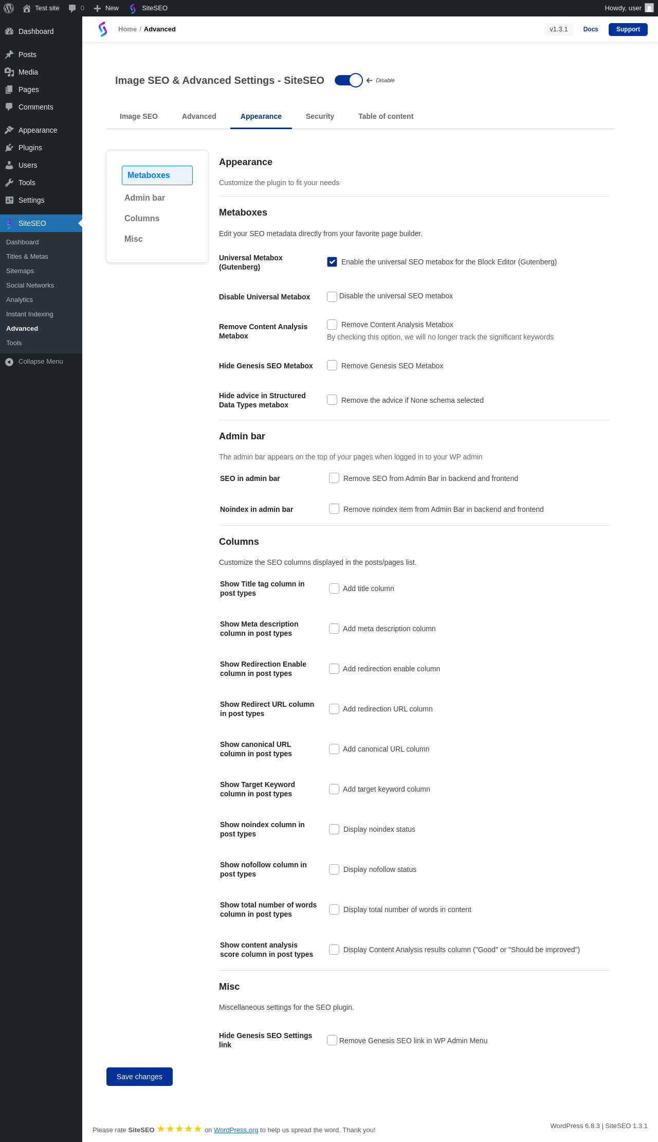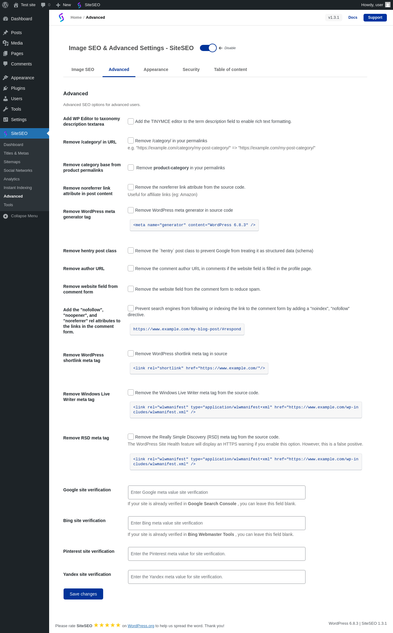 | URL | /wp-admin/admin.php?page=siteseo-advanced |