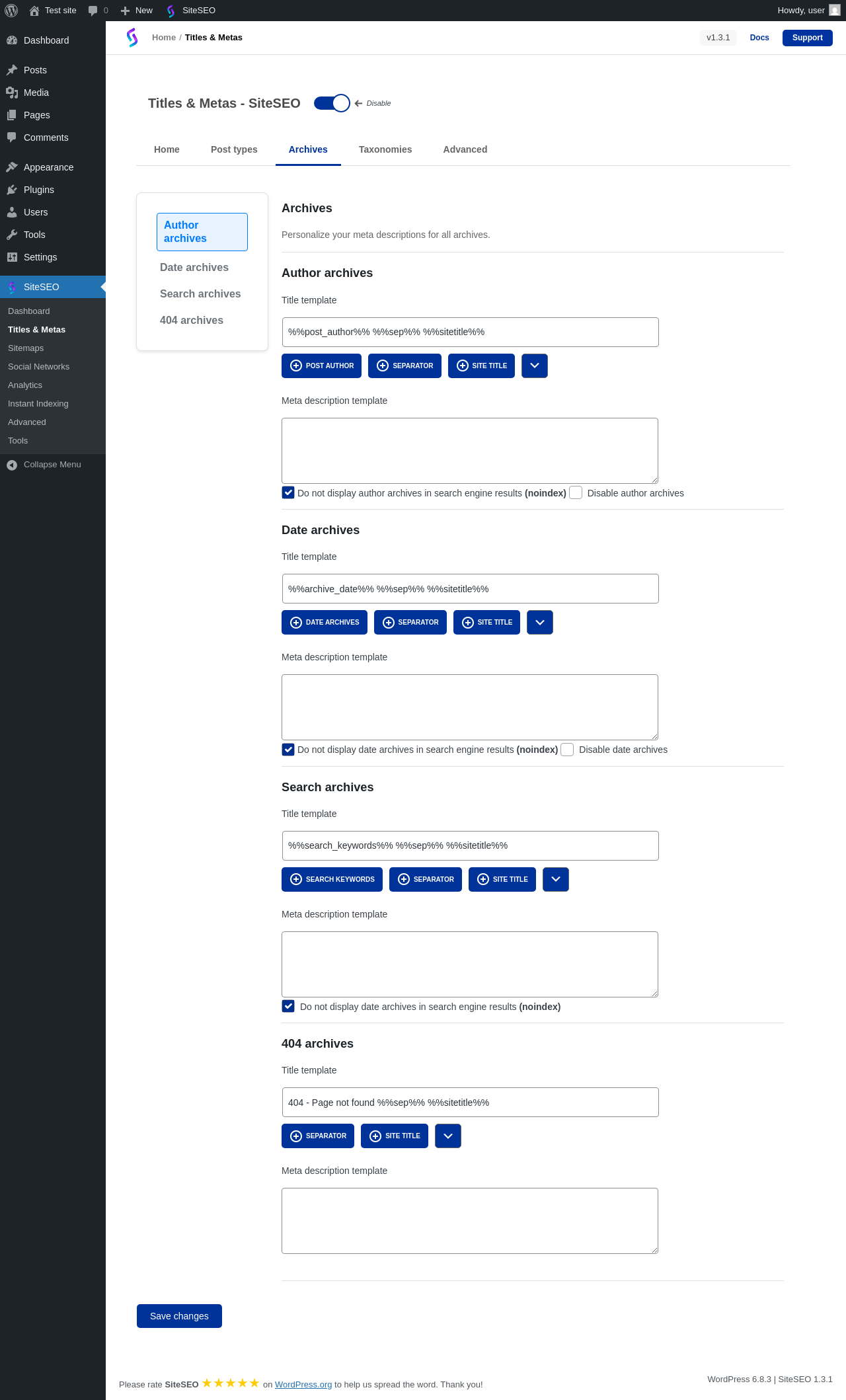 | URL | /wp-admin/admin.php?page=siteseo-titles |