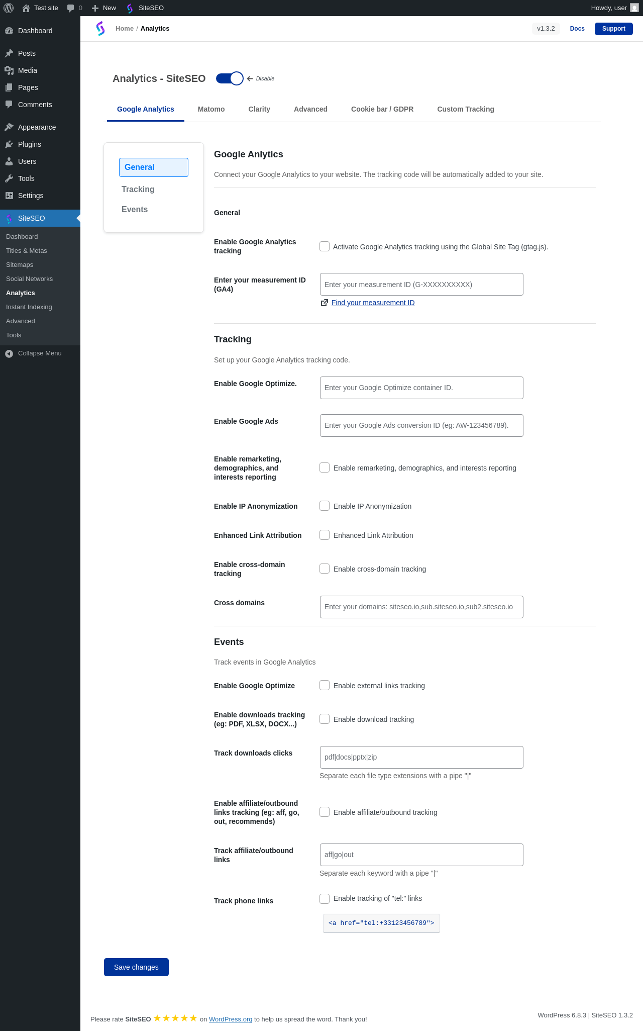 | URL | /wp-admin/admin.php?page=siteseo-analytics |