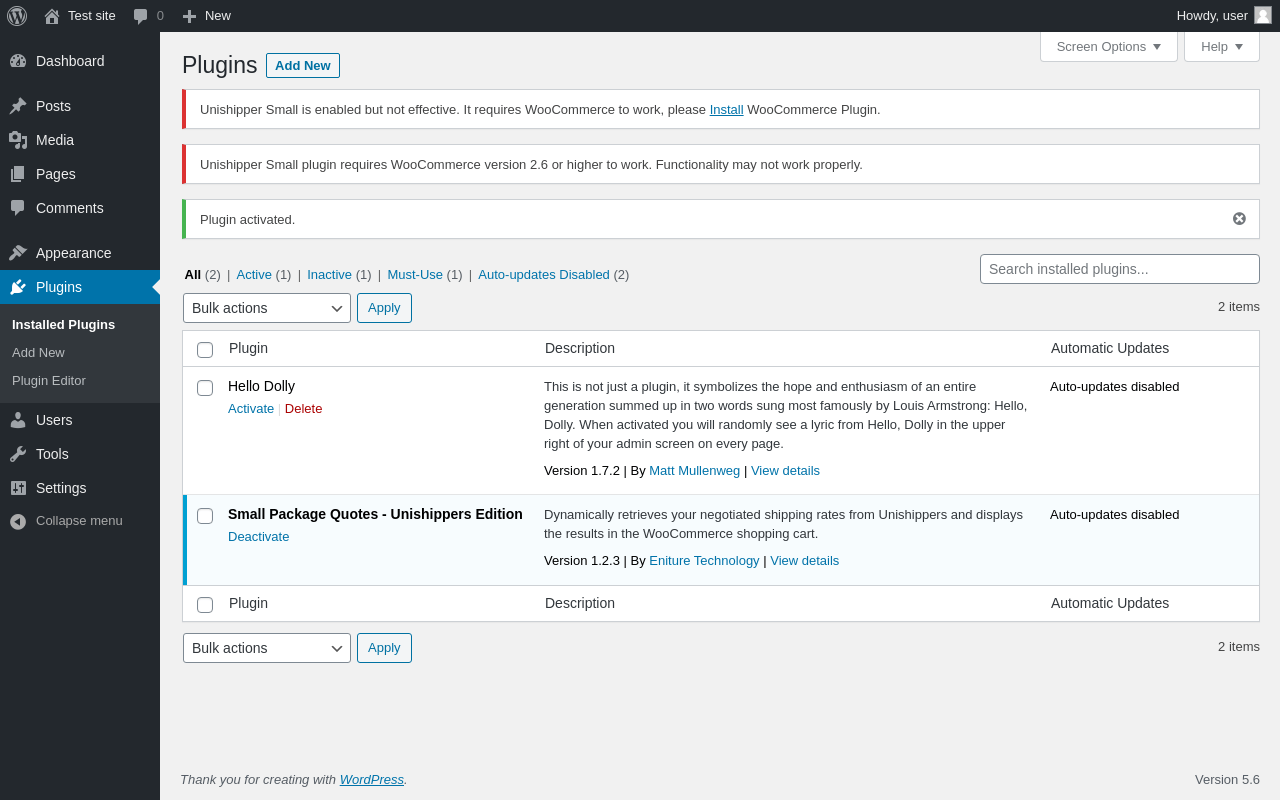 Does "Small Package Quotes - Unishippers Edition" work with WordPress 5.6 and PHP 7.4.8? A smoke test was performed on .