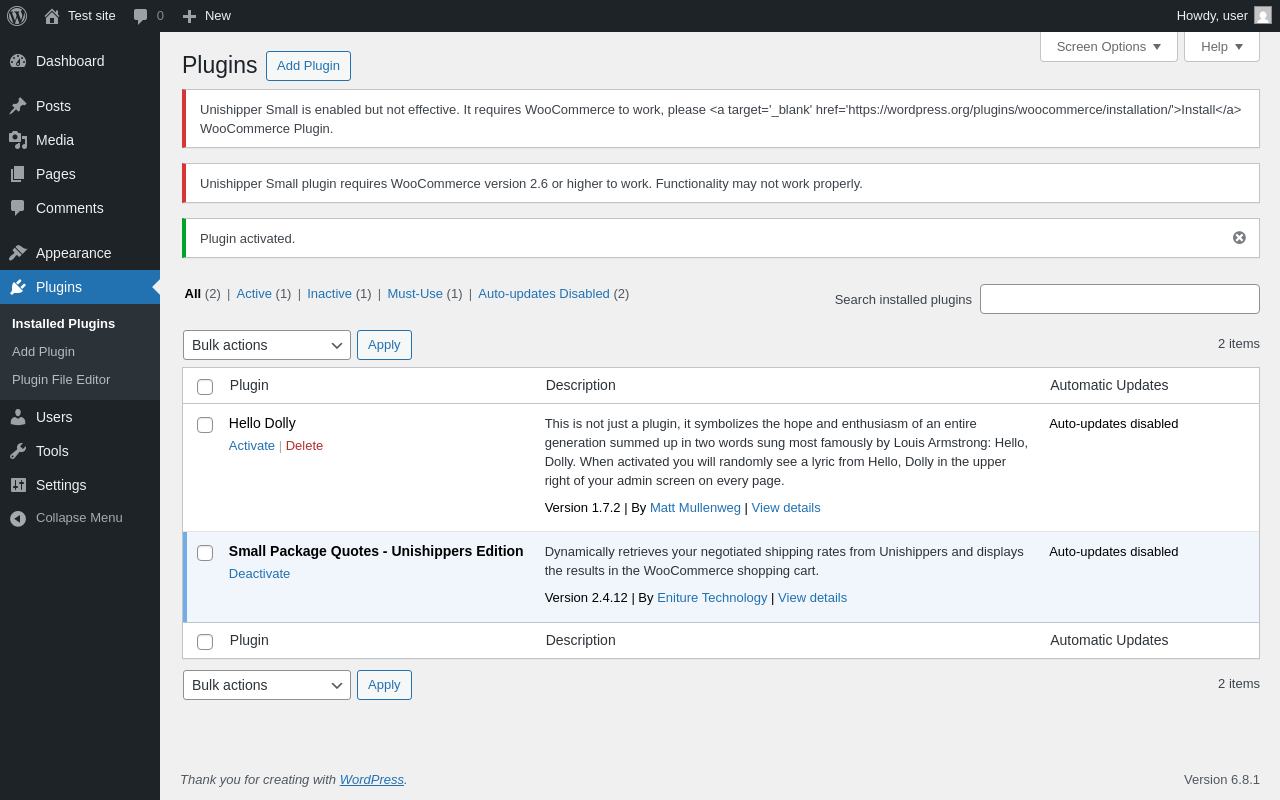 Does "Small Package Quotes - Unishippers Edition" work with WordPress 6.8.1 and PHP 8.1.12? A smoke test was performed on .