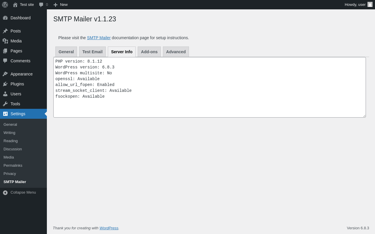 Does SMTP Mailer work with WordPress 6.8.3 and PHP 8.1.12? A smoke test was performed on .