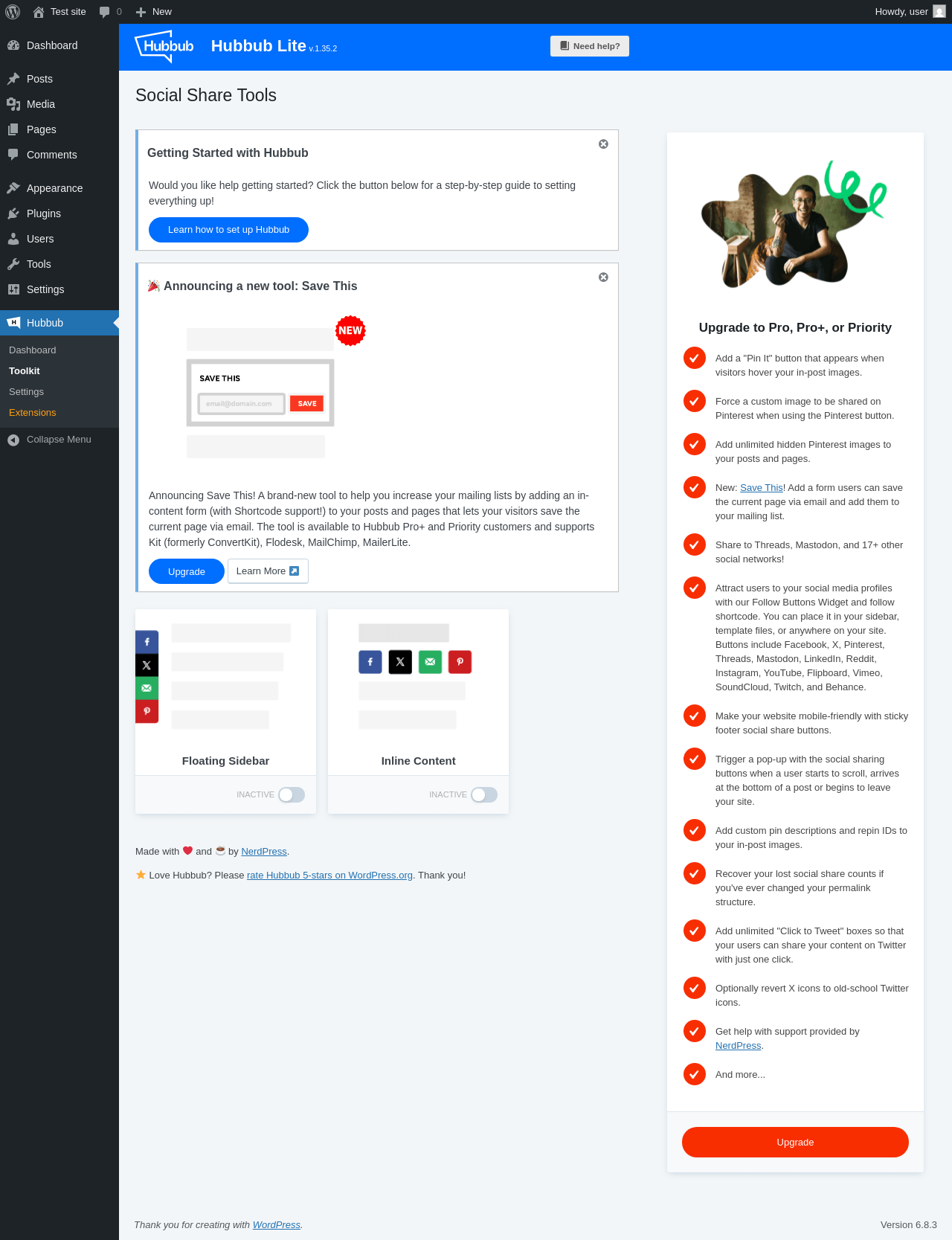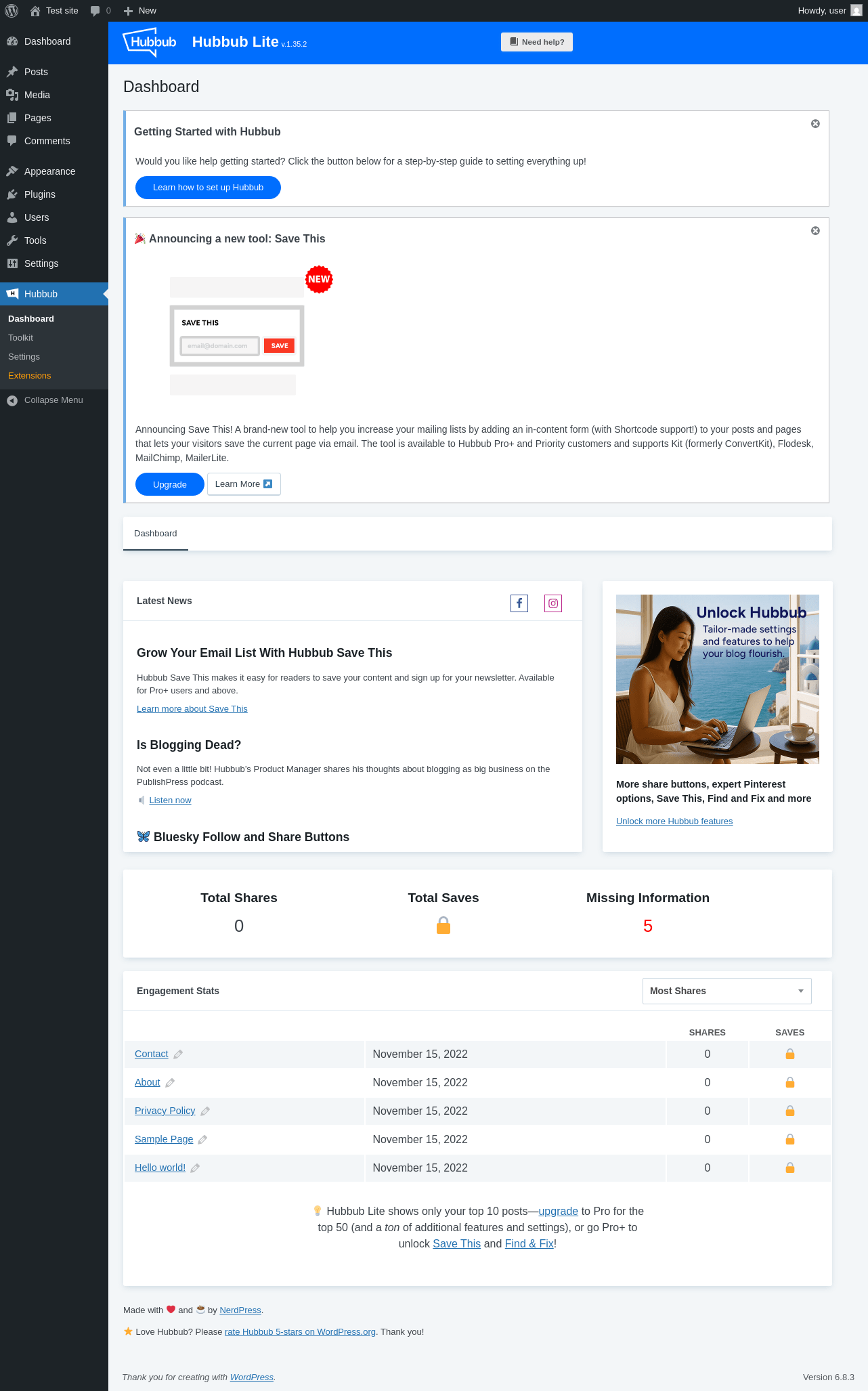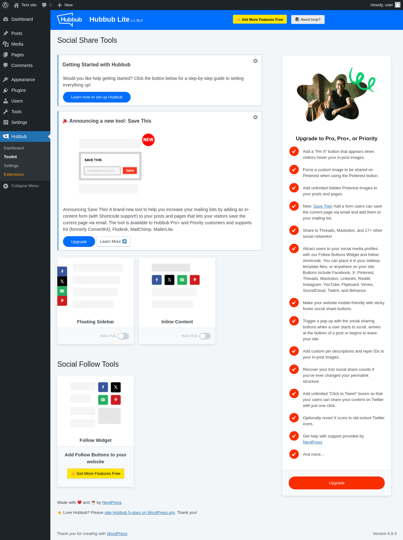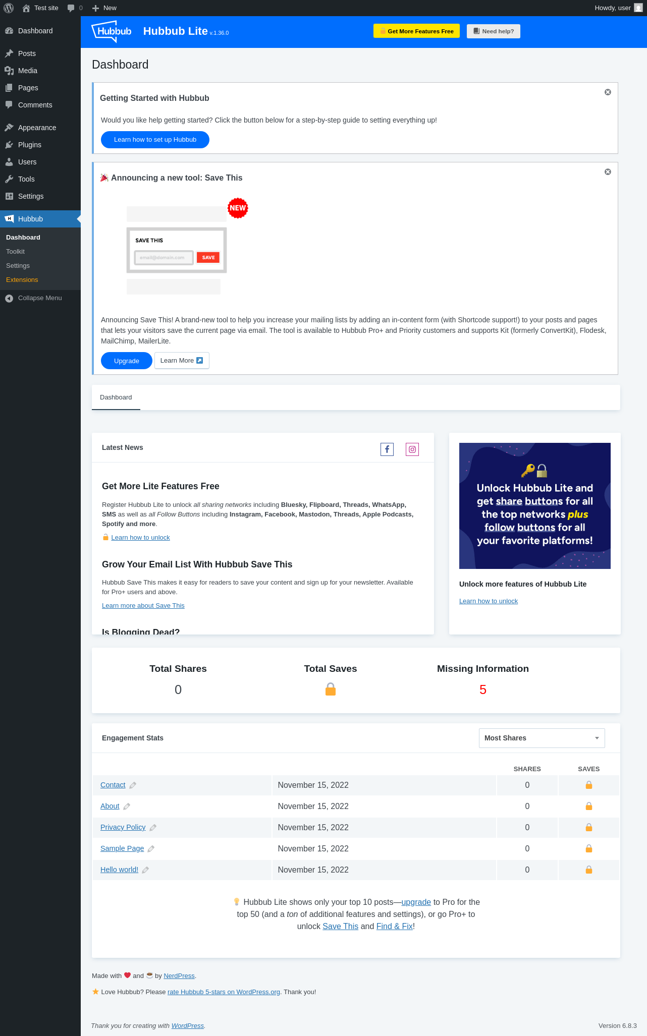 Does Hubbub Lite work with WordPress 6.8.3 and PHP 8.1.12? A smoke test was performed on .