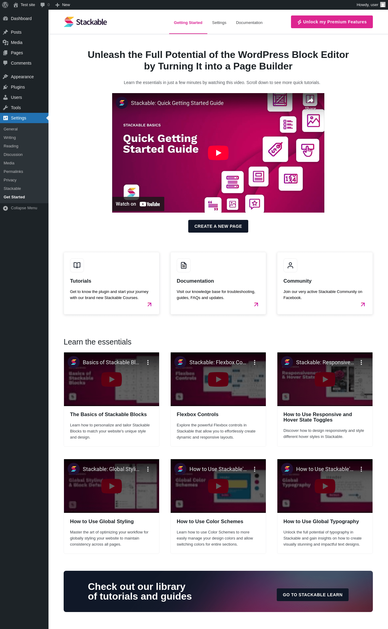URL | /wp-admin/options-general.php?page=stackable-getting-started |