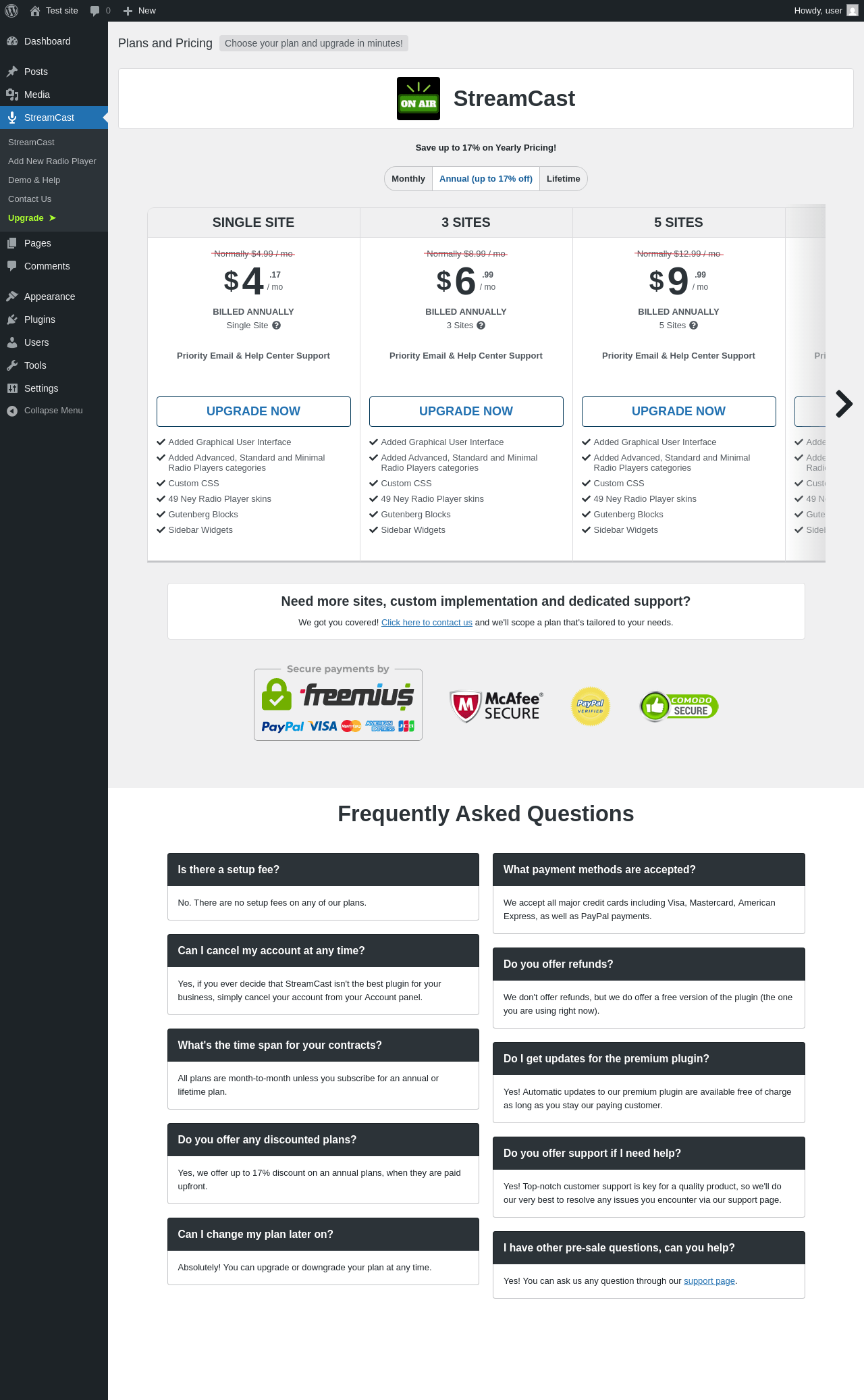 URL | /wp-admin/edit.php?post_type=streamcast&page=streamcast-pricing |