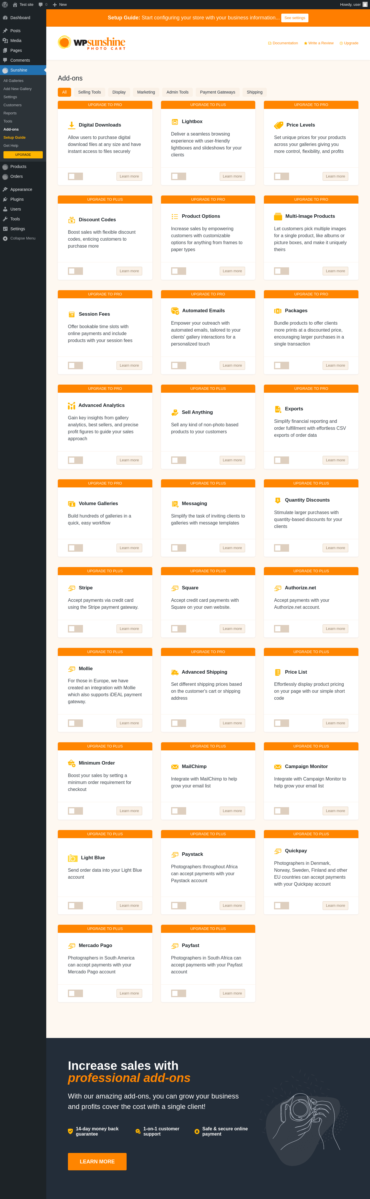 | URL | /wp-admin/edit.php?post_type=sunshine-gallery&page=sunshine-addons |