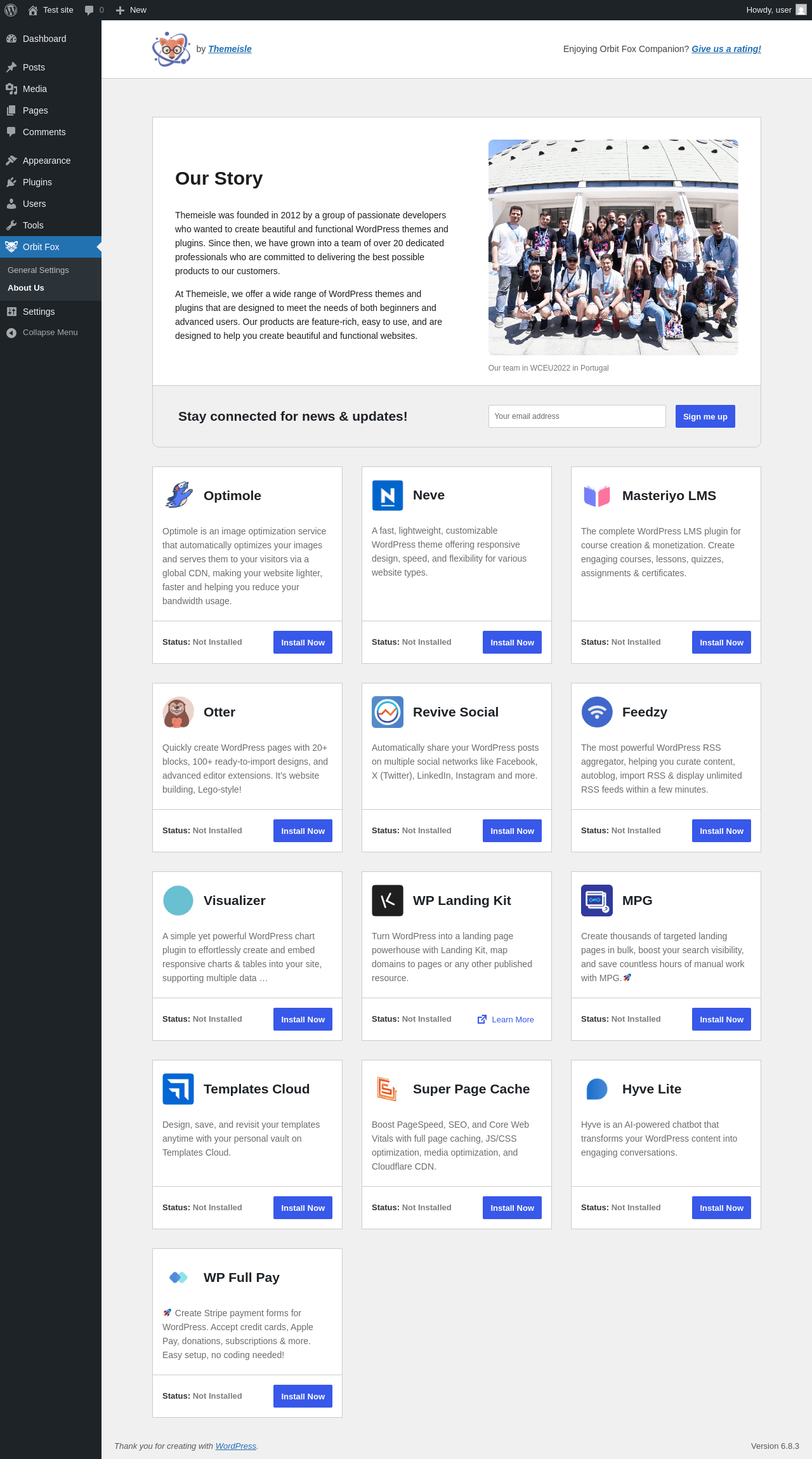Does Orbit Fox Companion work with WordPress 6.8.3 and PHP 8.1.12? A smoke test was performed on .