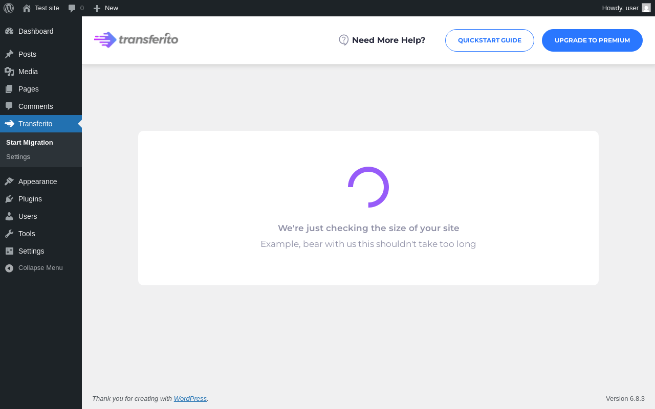 Does Transferito: WP Migration work with WordPress 6.8.3 and PHP 8.1.12? A smoke test was performed on .