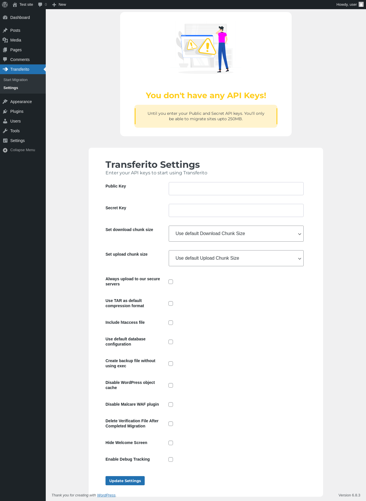 | URL | /wp-admin/admin.php?page=transferito-settings |