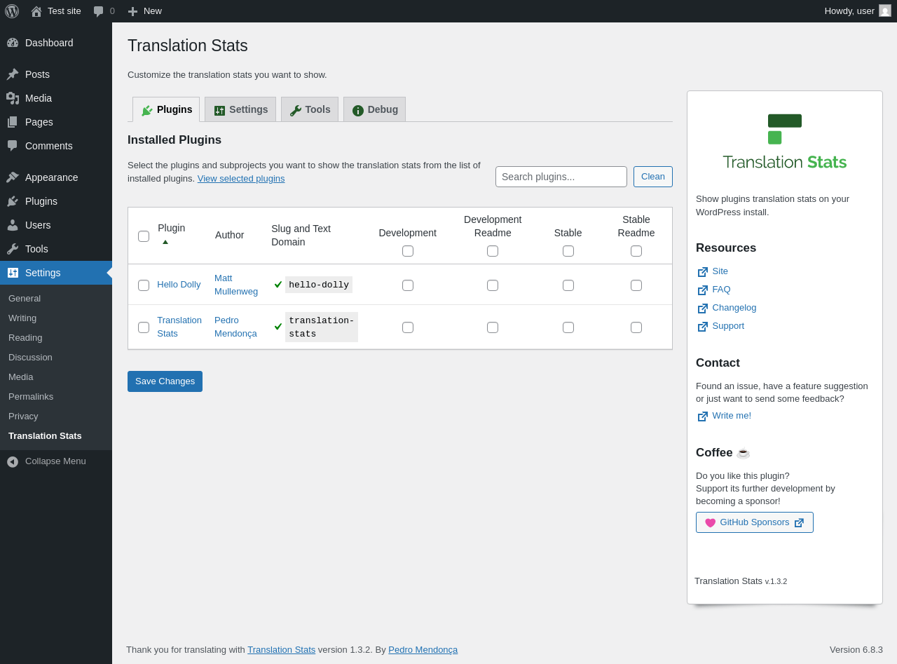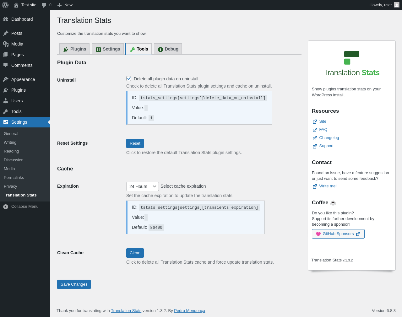 URL | /wp-admin/options-general.php?page=translation-stats |