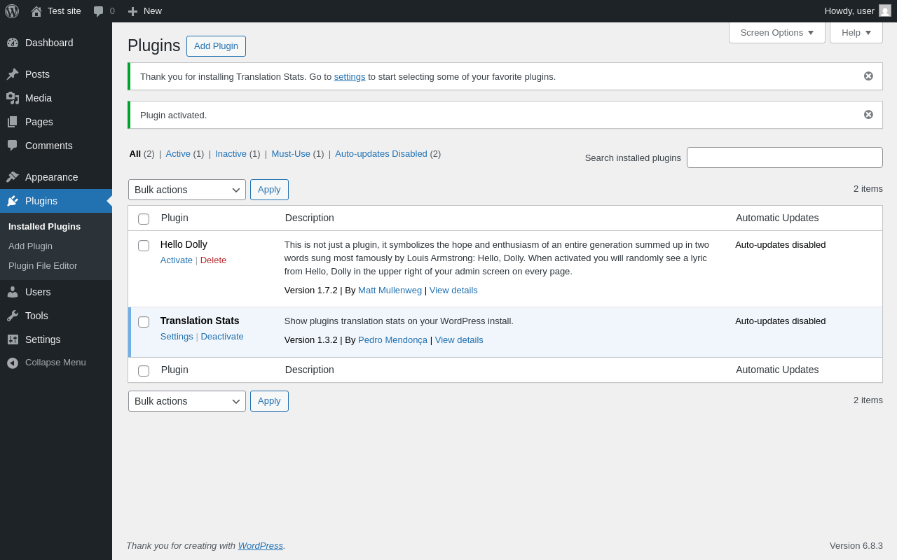 Does Translation Stats work with WordPress 6.8.3 and PHP 8.1.12? A smoke test was performed on .