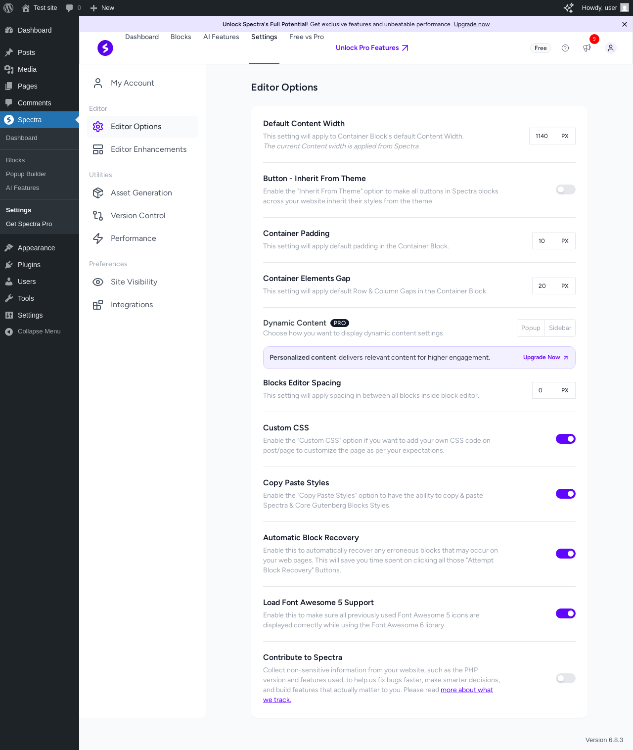 Does Spectra work with WordPress 6.8.3 and PHP 8.1.12? A smoke test was performed on .