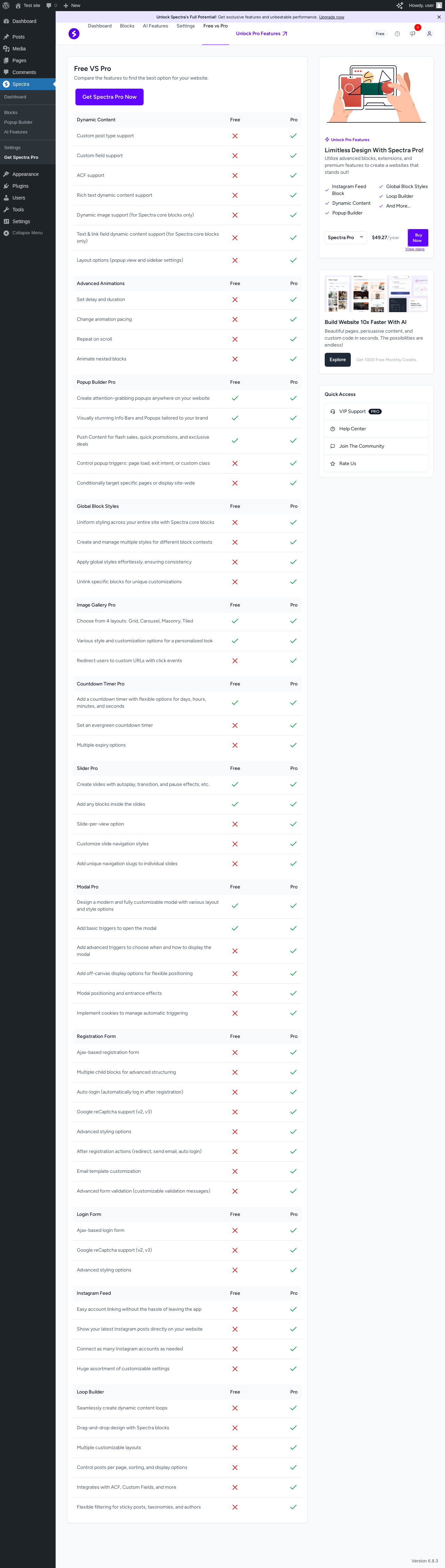 | URL | /wp-admin/admin.php?page=spectra&path=free-vs-pro |