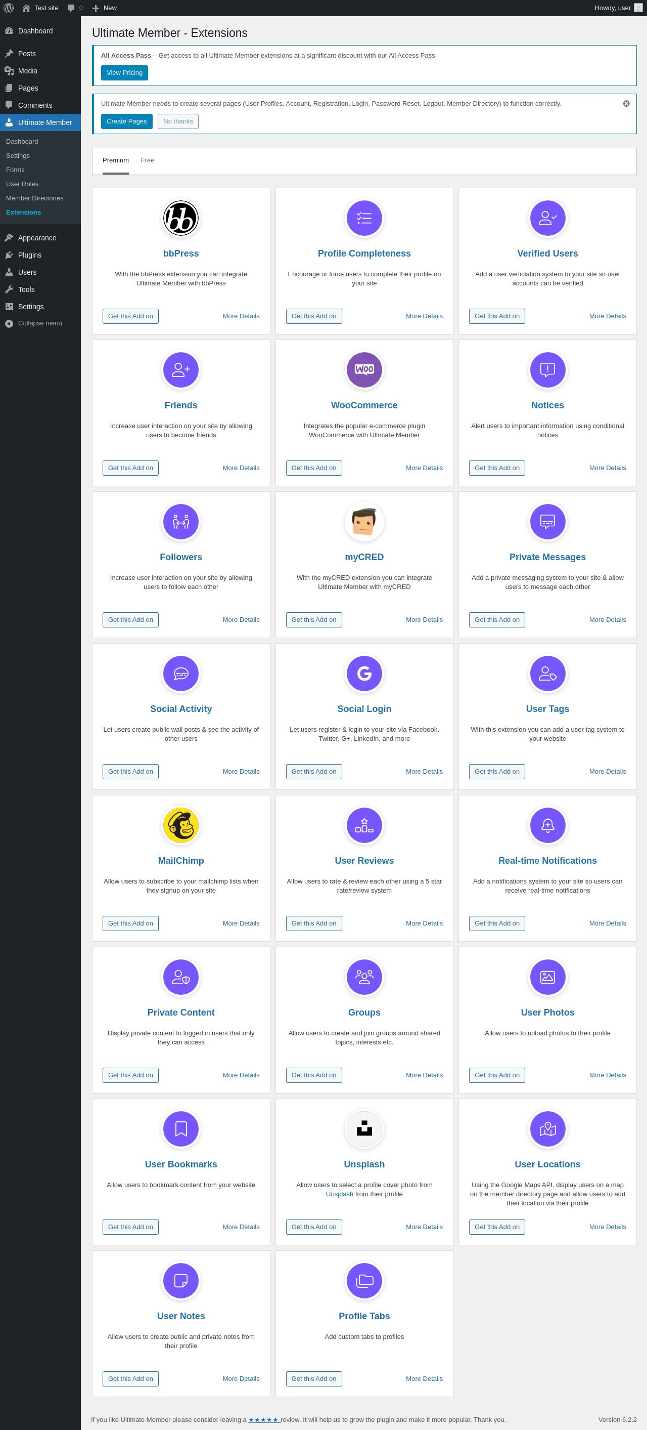 | URL | /wp-admin/admin.php?page=ultimatemember-extensions |