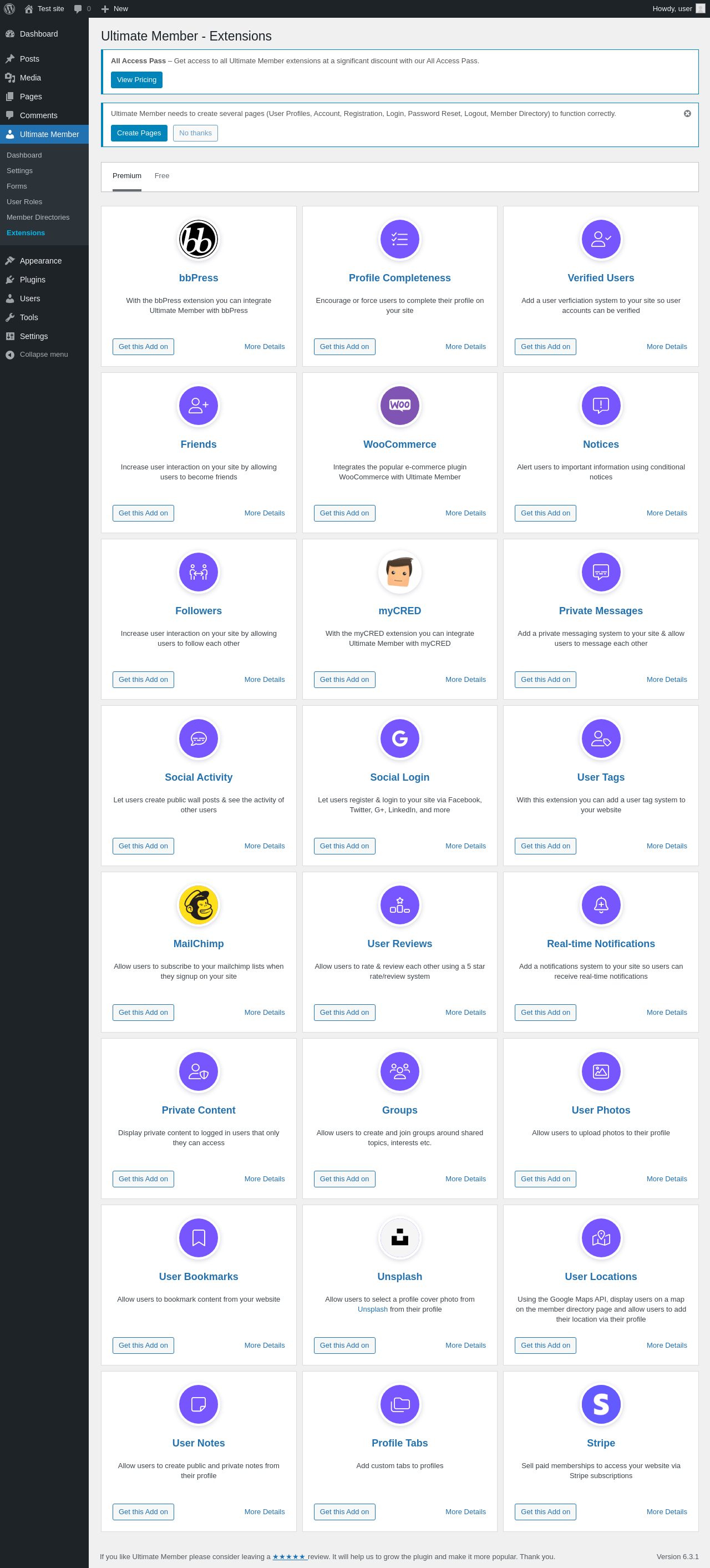 | URL | /wp-admin/admin.php?page=ultimatemember-extensions |