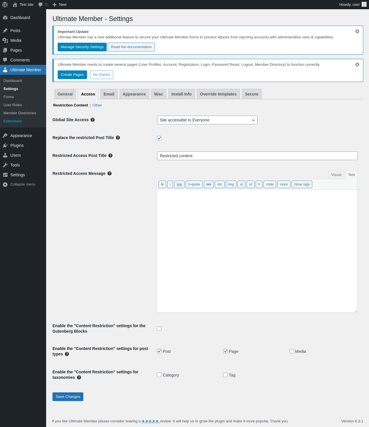 | URL | /wp-admin/admin.php?page=um_options&tab=access |