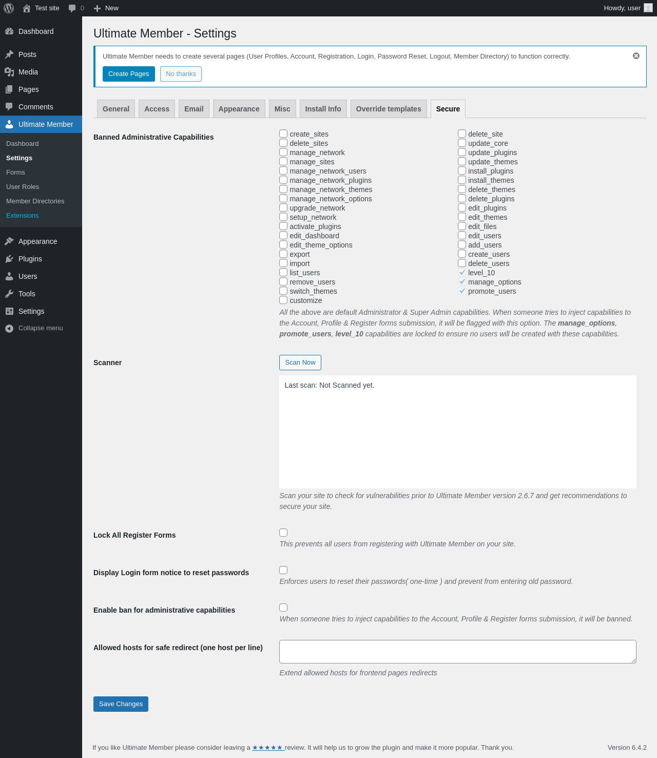 | URL | /wp-admin/admin.php?page=um_options&tab=secure |