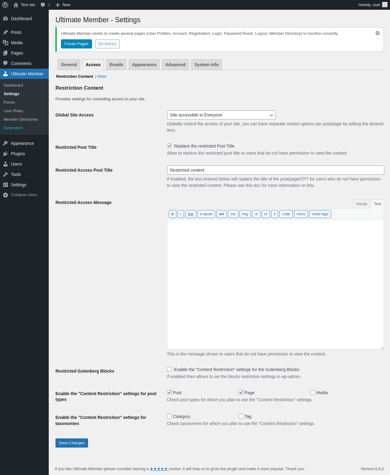 | URL | /wp-admin/admin.php?page=um_options&tab=access |