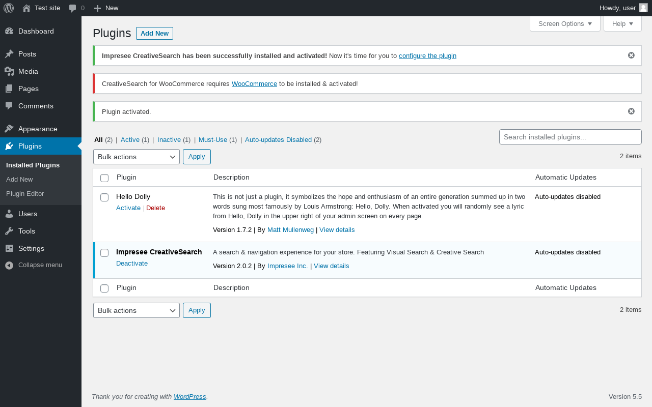 Does Impresee CreativeSearch work with WordPress 5.5 and PHP 7.2.16? A smoke test was performed on .