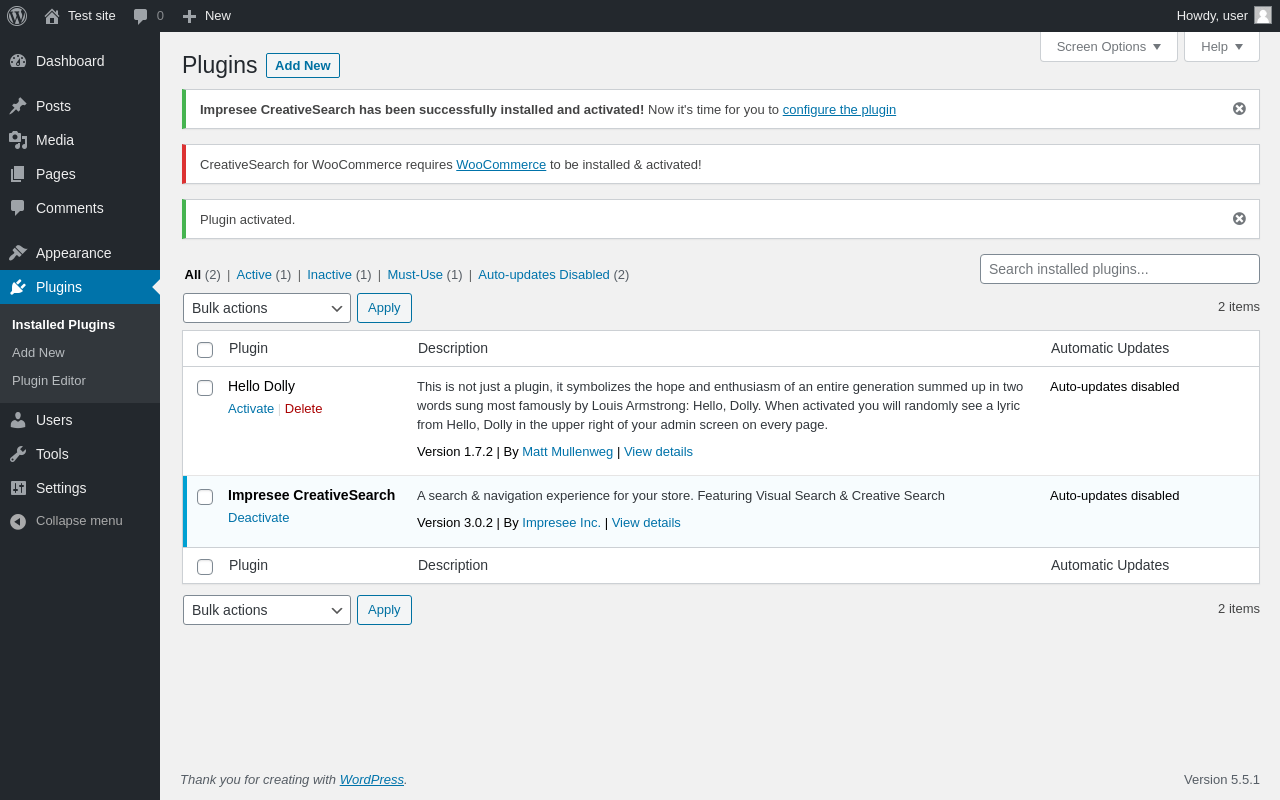 Does Impresee CreativeSearch work with WordPress 5.5.1 and PHP 7.4.8? A smoke test was performed on .