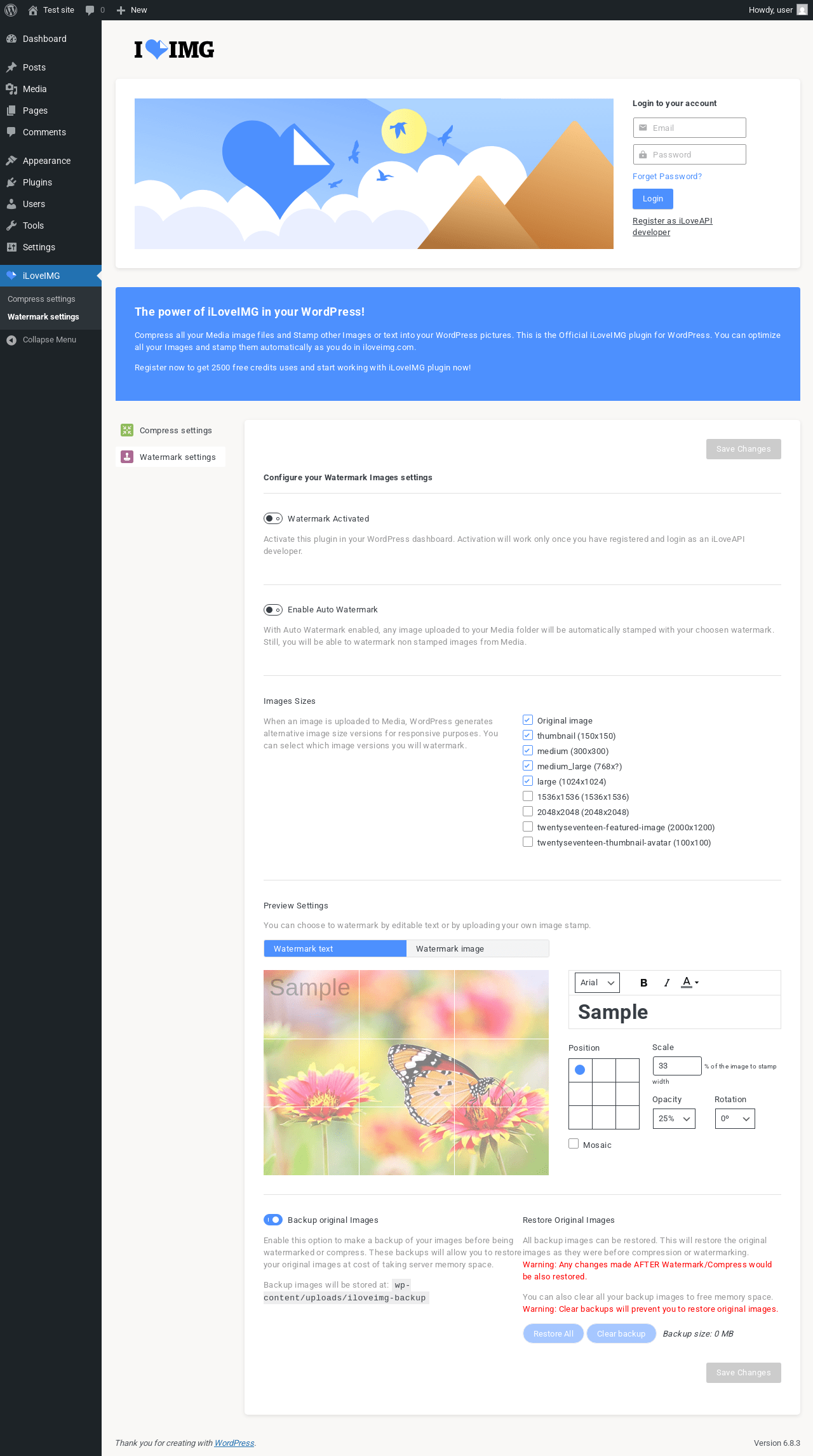 Does "Best Watermark - Protect images on your site with iLoveIMG" work with WordPress 6.8.3 and PHP 8.1.12? A smoke test was performed on .