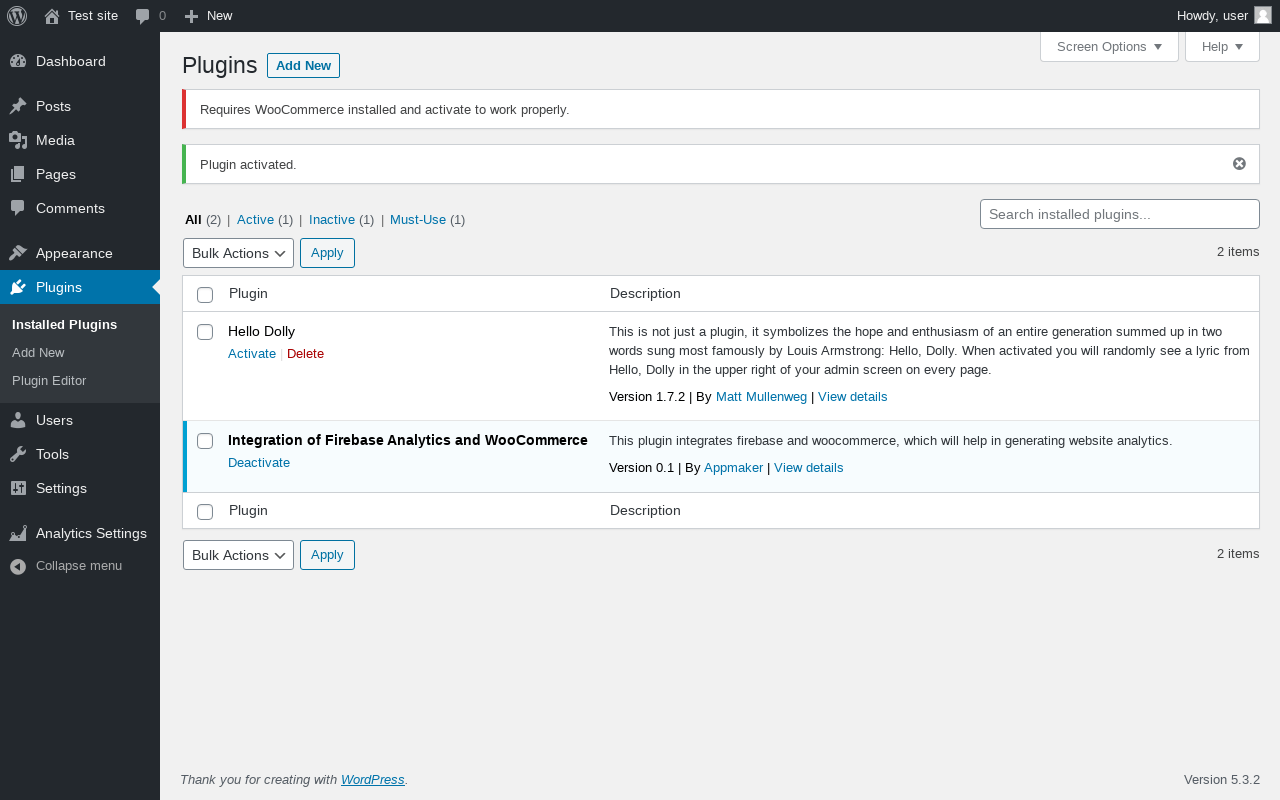 Does "Integration of Firebase Analytics and WooCommerce" work with WordPress 5.3.2 and PHP 7.2.16? A smoke test was performed on .